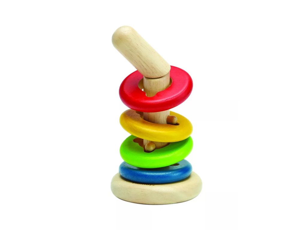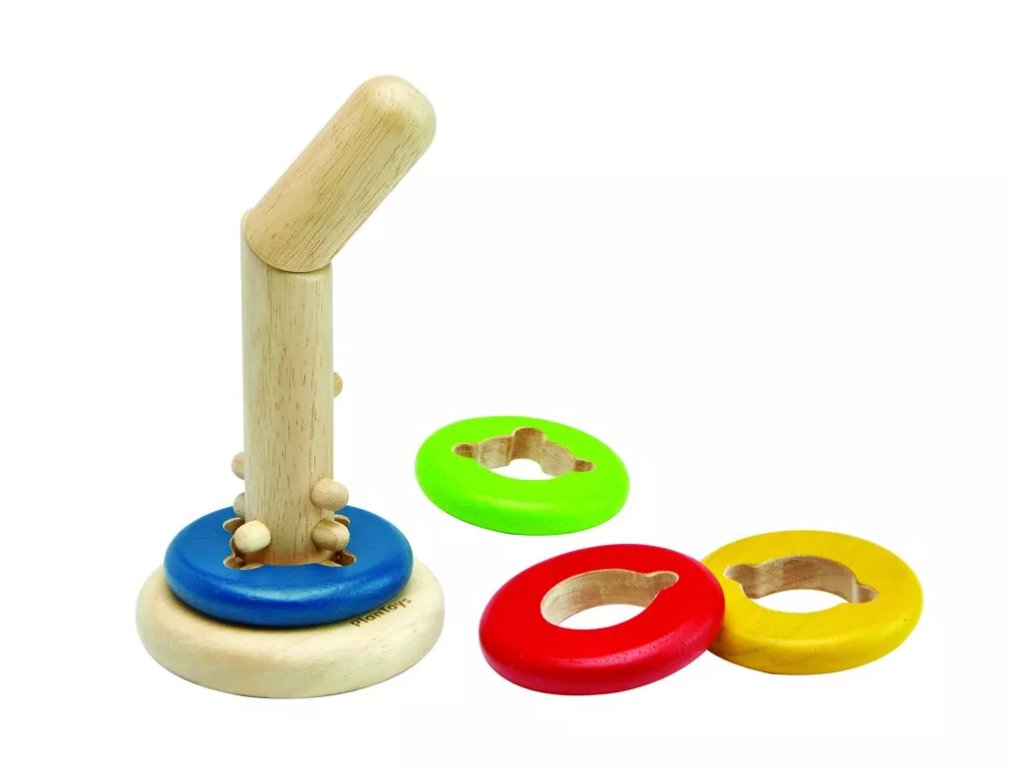 A játék lényege a kör alakú elemek pontos felfűzése a központi rúdra. A játék során a gyermekek fejlesztik a logikai gondolkodást, a koncentrációt, a szem-kéz koordinációt és a finommotorikát. A nehézség növelése érdekében a rúd felső része elforgatható, ami megnehezíti a felfűzést. Befejezés után a rúd félbehajtható a biztonságos tárolás érdekében.