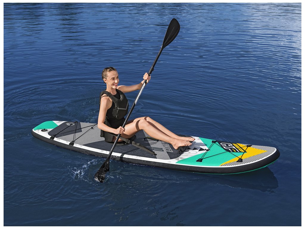 Ez a sokoldalú deszka ideális formájú úszáshoz nyugodt vízben és kisebb hullámokban is. Ráadásul a mellékelt ülésnek és lábtartónak köszönhetően könnyedén kajakká alakíthatod, így még nagyobb szabadságot adsz a vízen.