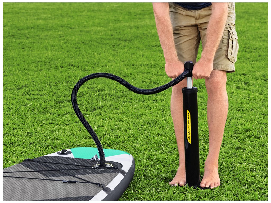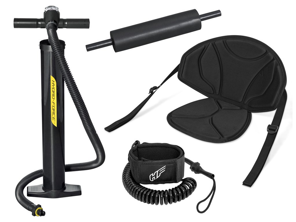 A tábla felszerelése egyszerű – csak fújja fel a mellékelt kézi pumpával, és kész is! Ha a kaland véget ért, egyszerűen használja a légszelepet a gyors ürítéshez. A TravelTech™ konstrukció biztosítja, hogy a tábla nagyon könnyen összecsukható és tárolható. Összecsukás után belefér a mellékelt hátizsákba. A csomagban talál még egy állítható lapátot, egy pórázt és egy javítókészletet – mindent, ami egy gondtalan vízi kalandhoz kell, bárhol is legyen.
