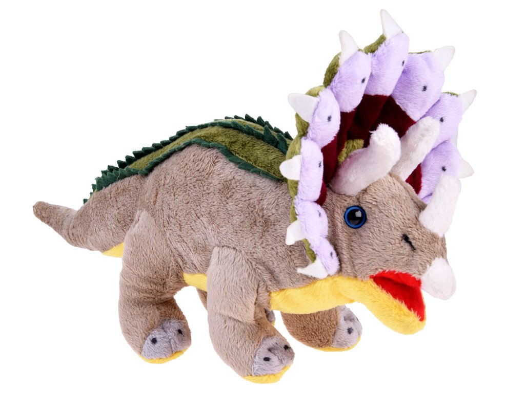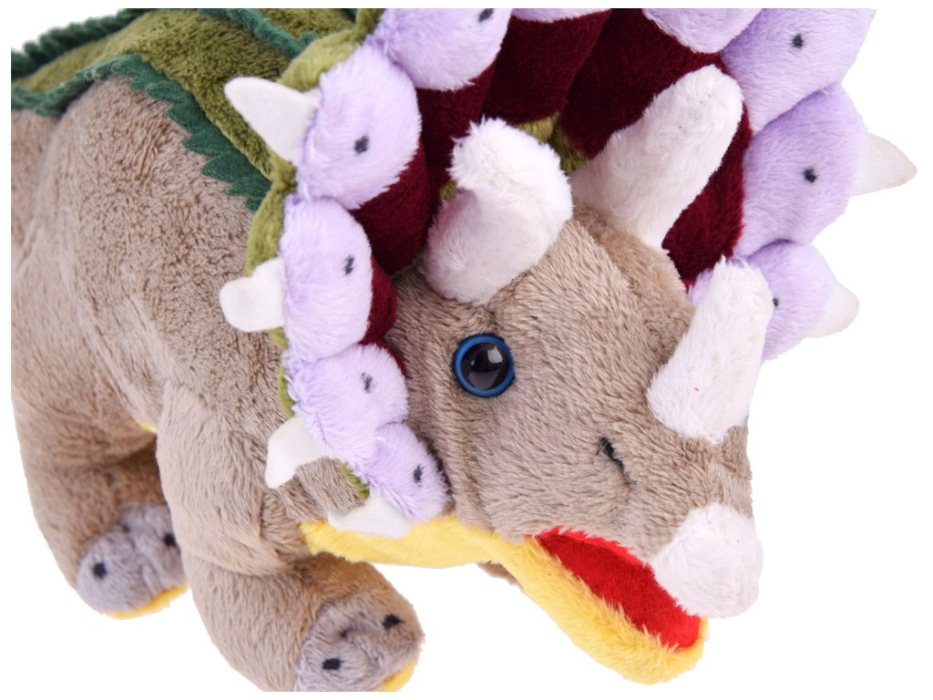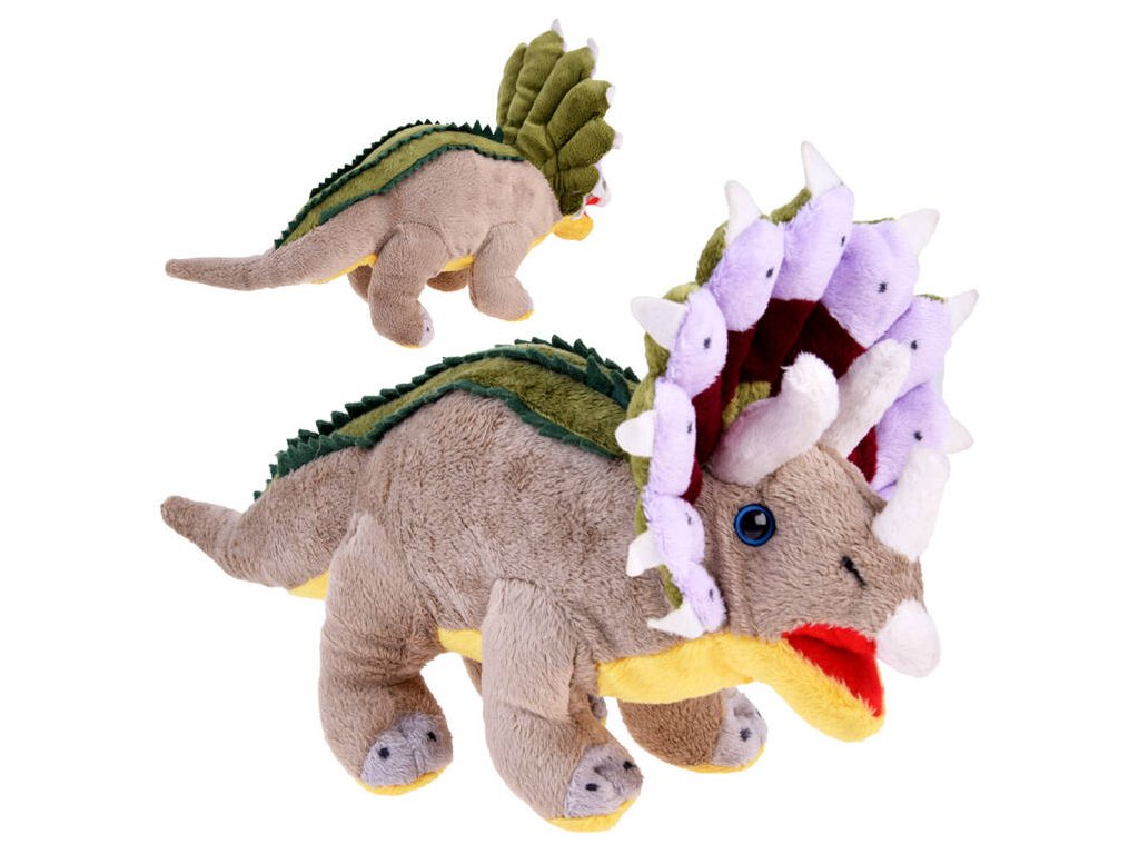 Úžasná kolekce plyšových dinosaurů, kteří sice vymřeli před mnoha miliony lety, ale stále žijí v představách našich dětí. Tato fascinující stvoření potkáte ve filmech, pohádkách nebo hrách. Vyrobené z vysoce kvalitních materiálů s důrazem na nejmenší detaily splní i ty nejvyšší nároky vašich malých ratolestí. Plyšák je věrným odrazem Triceratopse, bylinožravého dinosaura, který měl tři rohy. Modré oči dinosaura jsou vyrobené z plastu. Celkově vypadá velmi realisticky. Triceratops bude skvělou ozdobou dětského pokoje, společníkem při hrách, hrdinou dobrodružství, která si vaše dítě vymyslí, a samozřejmě může být také jedinečným dárkem. Určitě se stane oblíbenou hračkou vašeho dítěte.