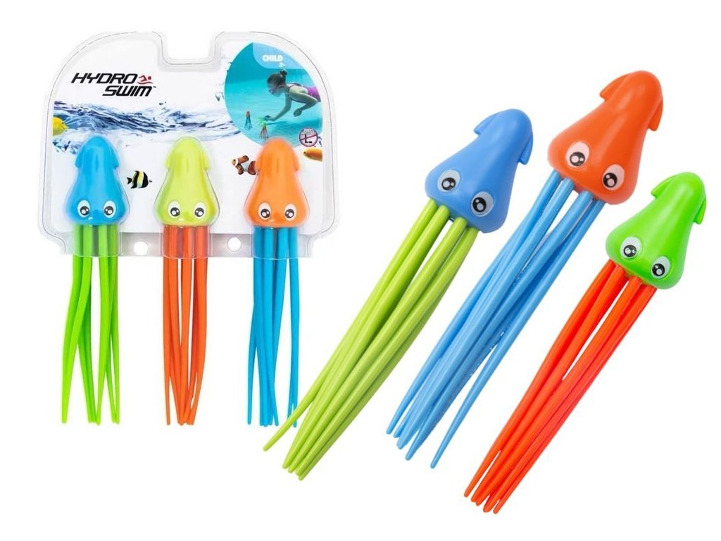 Potápěčská sada tří chobotniček bude skvělou zábavou pro vaše dítě, které spolu s přáteli bude moci uspořádat vodní soutěže. Od této chvíle může být prázdninová zábava ještě zajímavější a aktivnější.