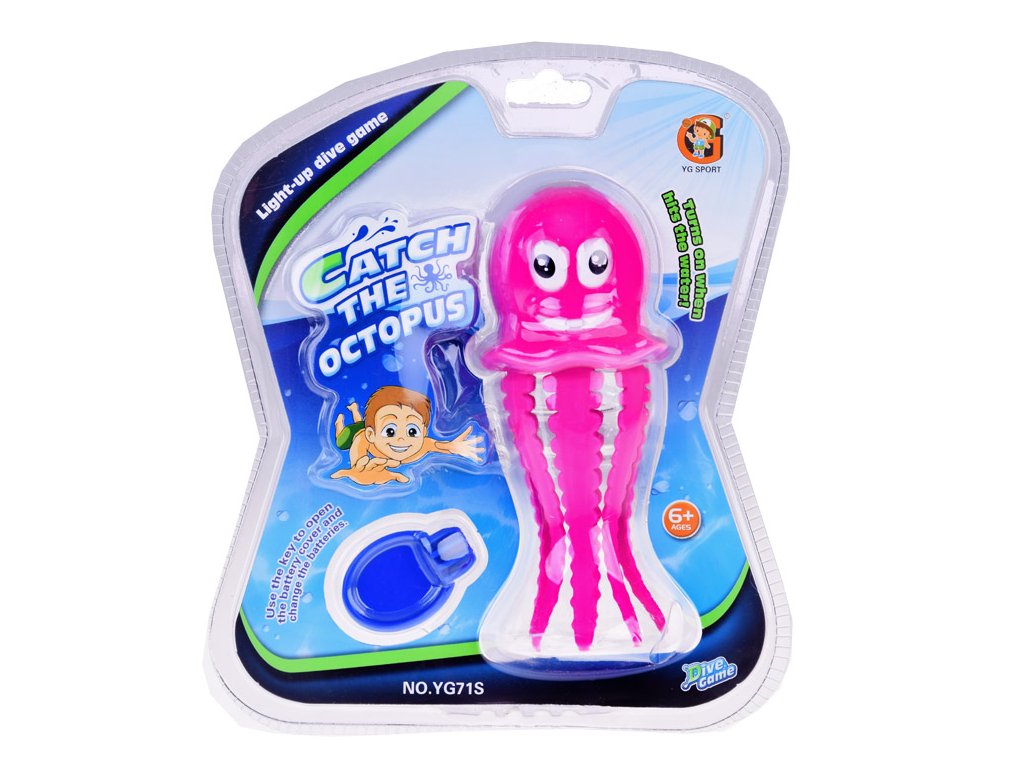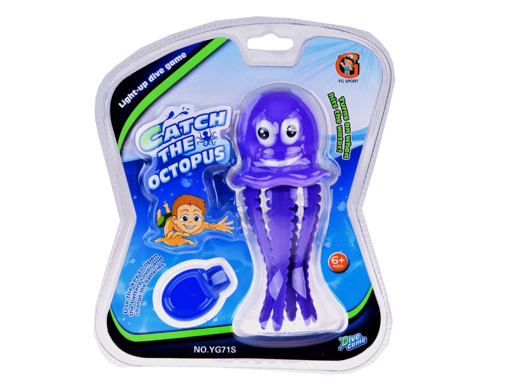 A búvárpolip ideális játék azoknak a gyerekeknek, akik felfedezik a vízi világ titkait. Csak dobja be a medencébe vagy a fürdőkádba, és búvárszemüveget viselő gyermeke könnyen megtalálja az alján. Merész színei felkeltik a figyelmet, víz alá kerülve pedig színes fénnyel kezd ragyogni , ami tovább ösztönzi a szórakozást.