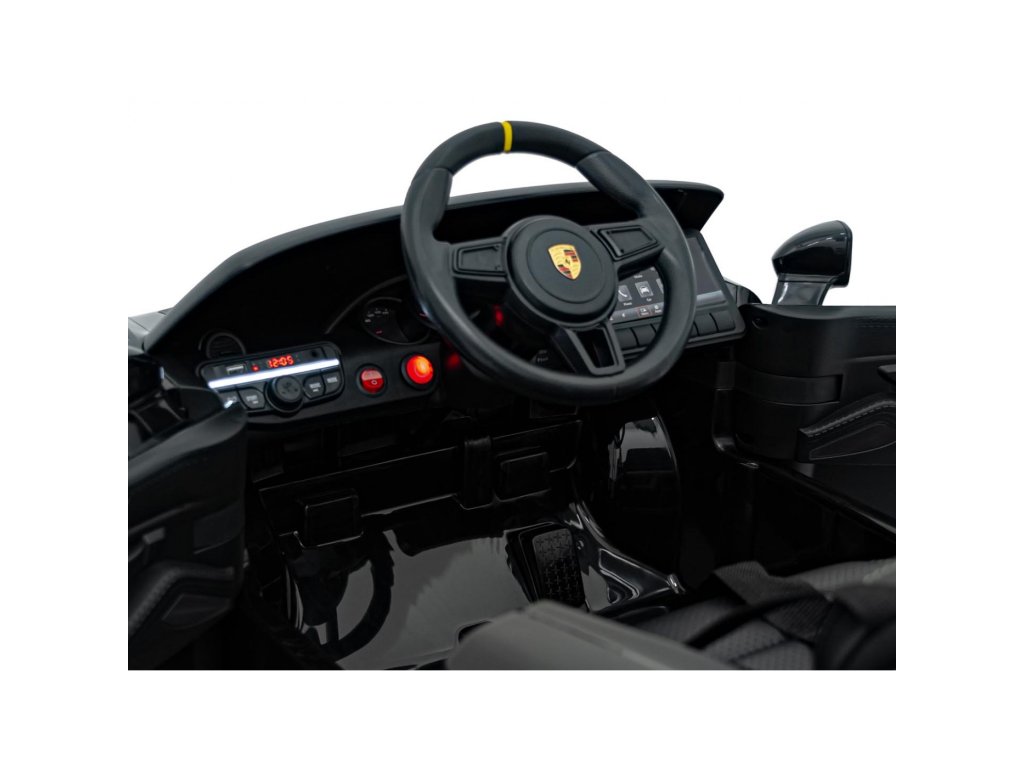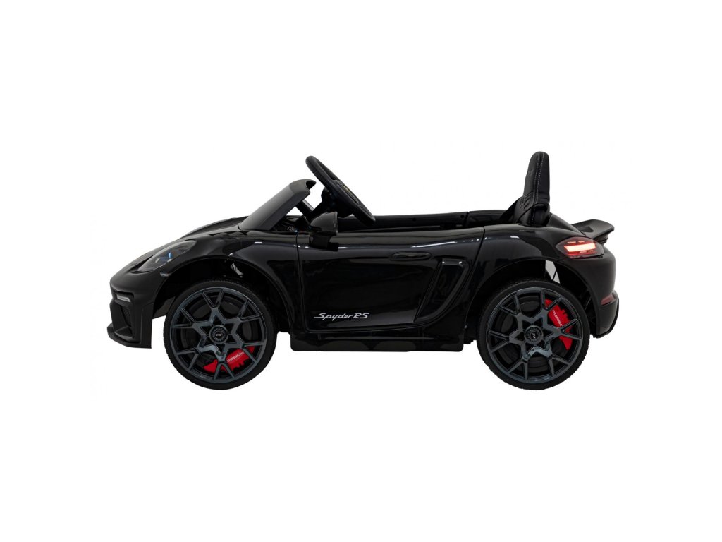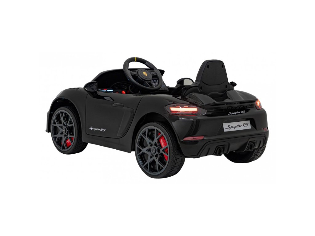 A Porsche Spyder RS 718 elektromos autó két 90 W összteljesítményű motorral és egy 12V 7Ah kapacitású akkumulátorral rendelkezik. Az EVA hab kerekek és az ökológiai bőrrel borított ülés gondoskodik a kényelmes utazásról. A zenepanel minden bizonnyal élvezetesebbé teszi az utazást a gyermek számára MP3, USB, AUX, Bluetooth és rádió . Teherbírás a játékautó 30 kg . A játékautó első és hátsó LED világítással és nyitható ajtókkal rendelkezik.