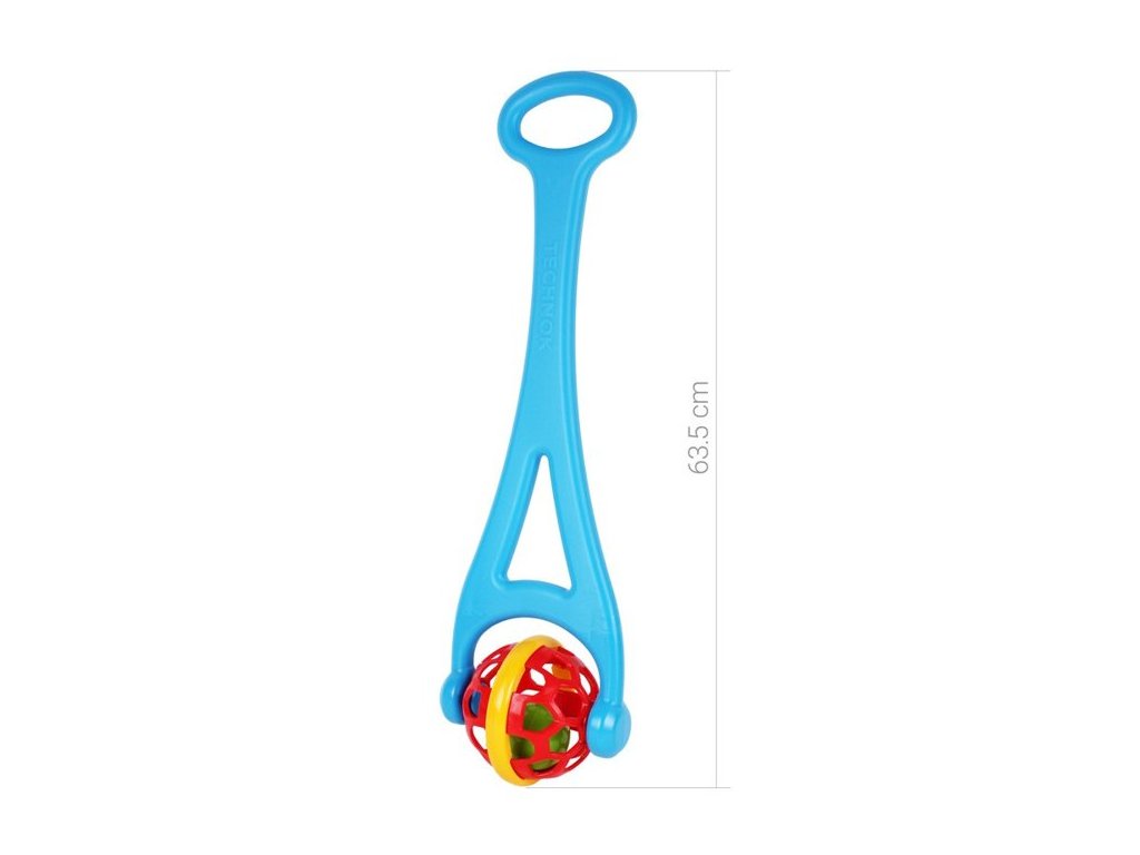 Míček na tlačení a tahání je hračka pro nejmenší děti. Měkký míček s kuličkou uprostřed vytváří příjemný zvuk při pohybu.