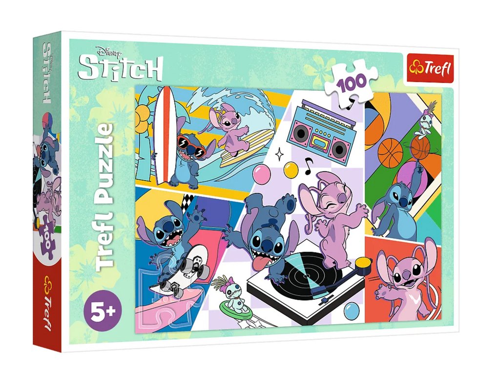 A Trefl márka "Lilo és Stitch emlékei" puzzle 100 darabot tartalmaz, és e népszerű mese rajongói számára készült. Minőségi anyagokból és speciális fényvisszaverő papírból készült a könnyebb hajtogatáshoz.