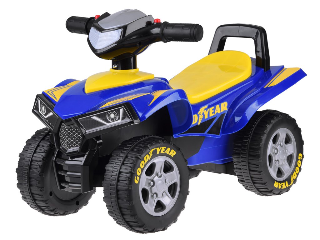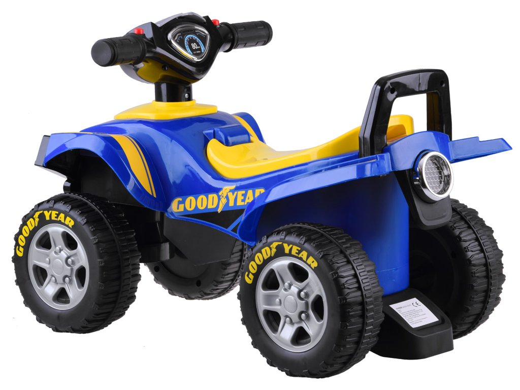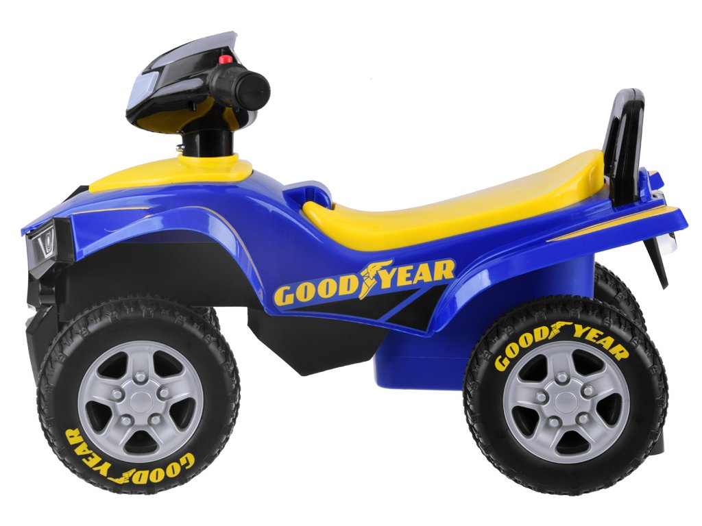 Jízda na čtyřkolce s licencí Goodyear poskytne každému malému řidiči vzrušující dobrodružství. Vozidlo je vhodné pro děti od 18 měsíců. Čtyřkolka je vybavená zvukovými a svítícími efekty.