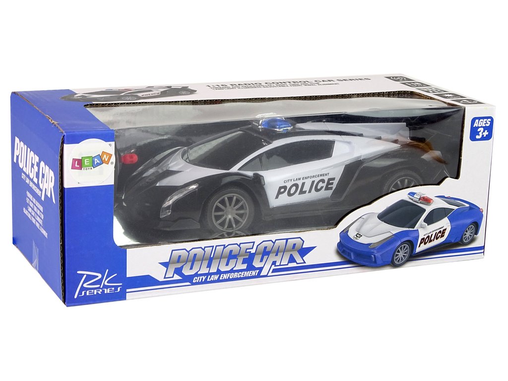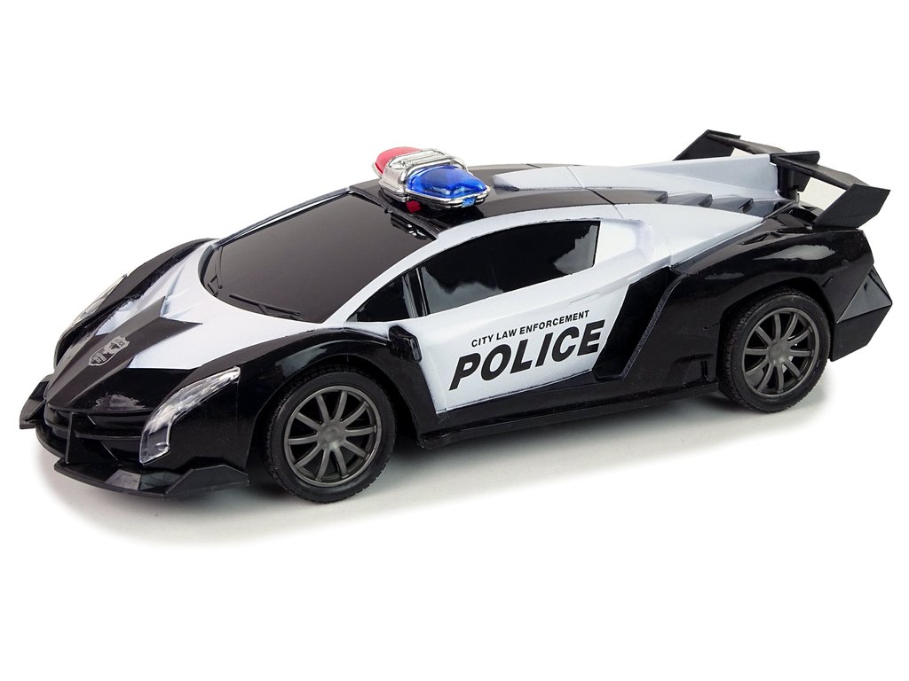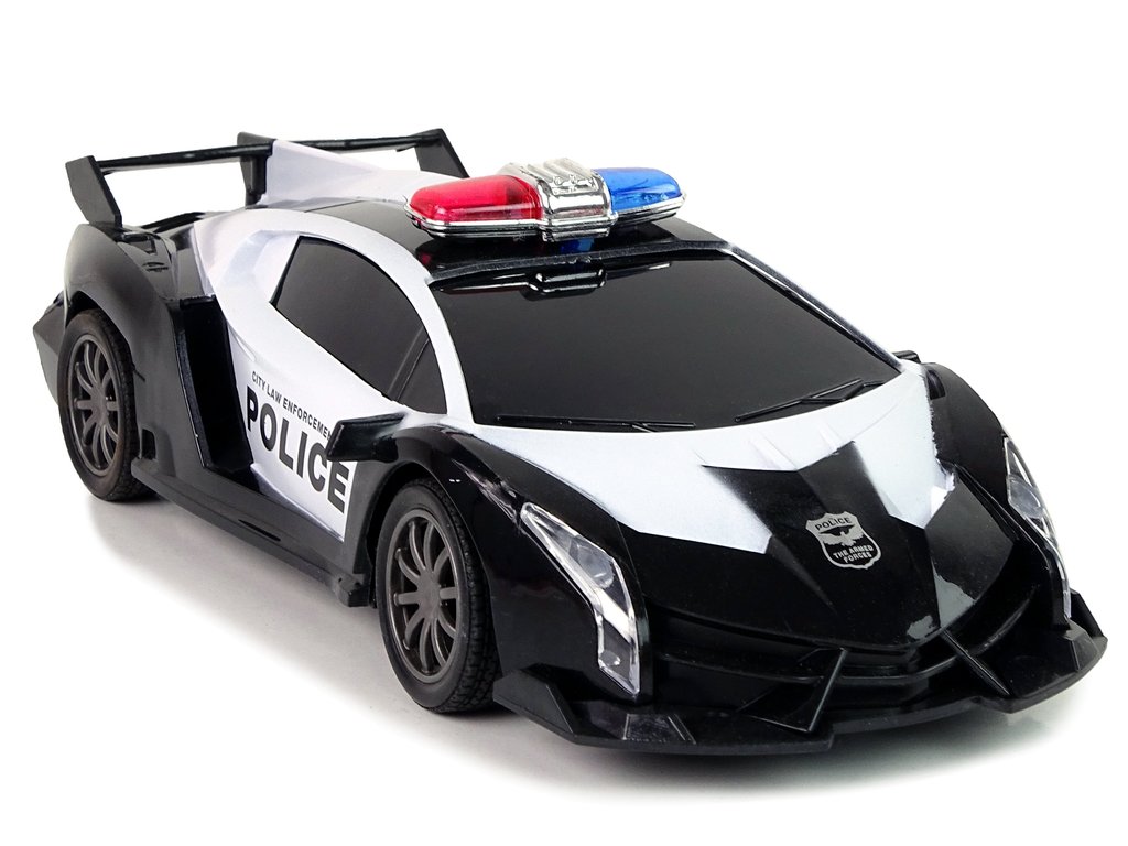 Od teď se mohou všichni malí nadšenci motorismu vcítit do role policistů a vyrazit do akce s naším závodním policejním vozem. Bílo-černý design a svítící LED světla dodávají hračce realistický vzhled.