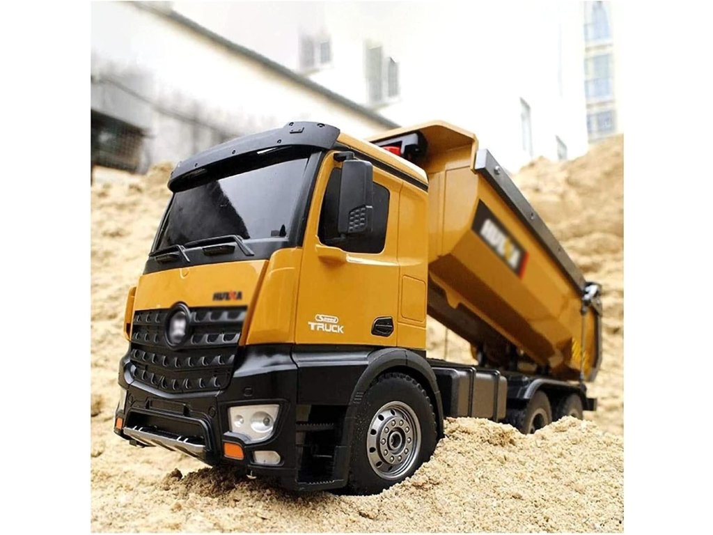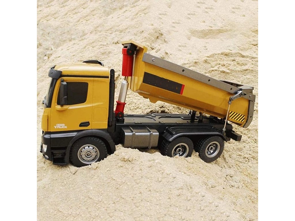 RC távirányítós autómodell vezérlővel, billenős teherautó építőipari jármű
