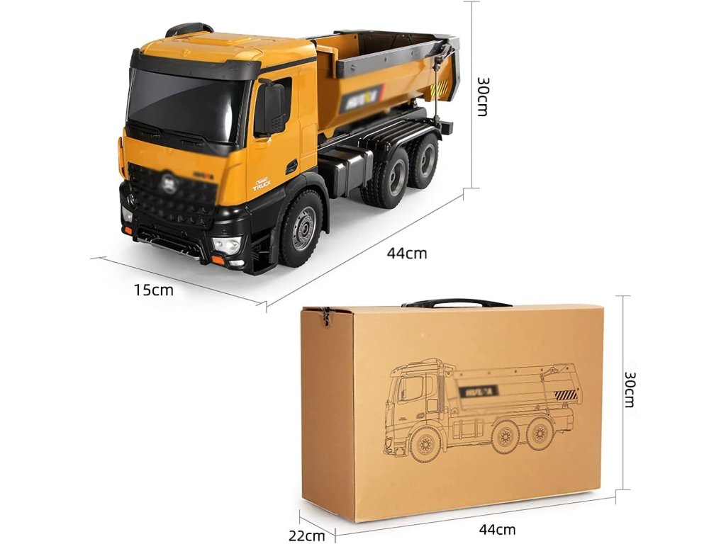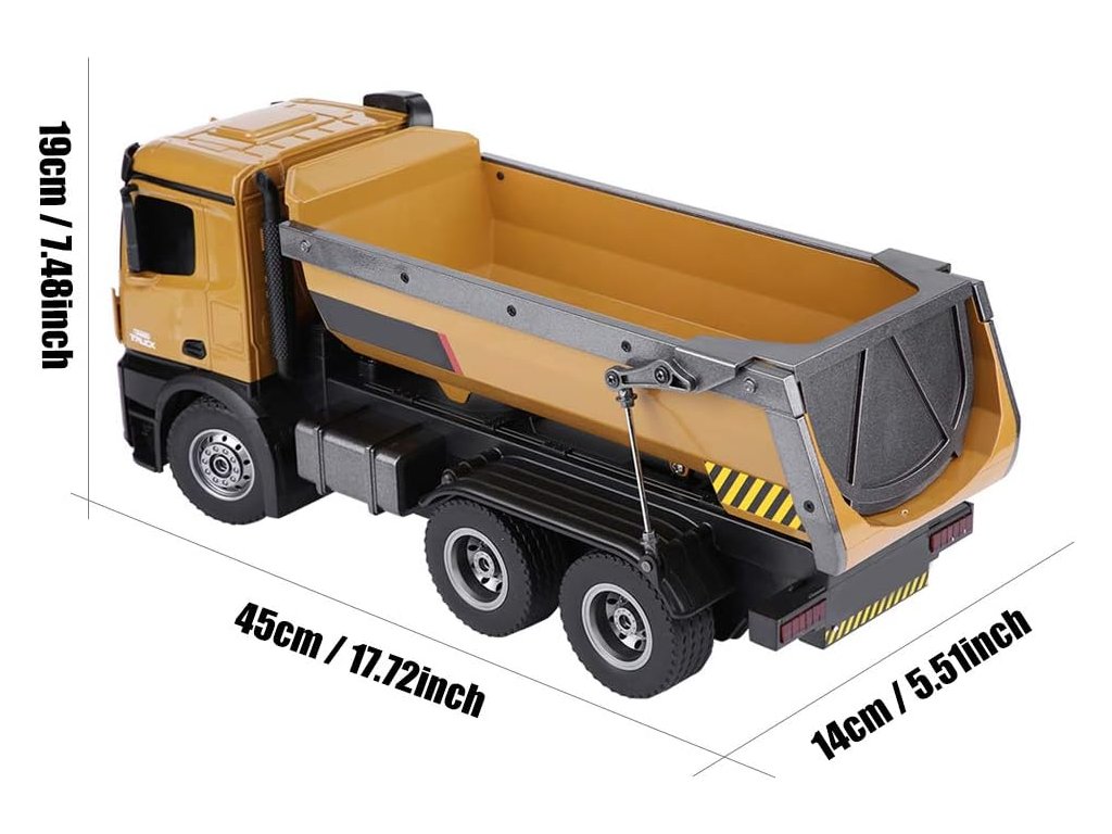 Dálkově ovládané nákladní vozidlo v měřítku 1:16 nabízí zábavu pro malé i velké. S 10kanálovým ovladačem můžete snadno ovládat všechny funkce vozidla, včetně sklápění a zdvihání návěsu, což věrně simuluje reálné pracovní situace. Gumová kola a LED světla zajišťují skvělý výkon i za zhoršených podmínek, zatímco realistické zvuky dodávají autentický zážitek ze hry. Nabíjecí akumulátor zaručuje dlouhou výdrž a opakované použití.