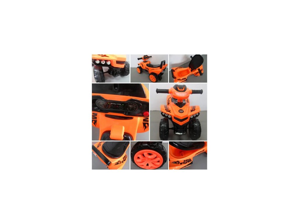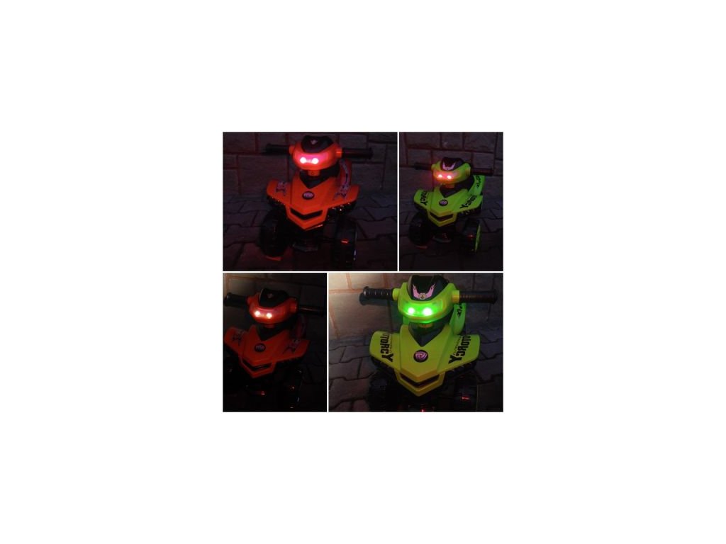 Ez a kidobógép kültéri terepen és tágas helyiségekben való használatra készült. A lendületes zene és a közvetlenül a kormánykerékről érkező kürt nagyszerű szórakozást nyújt, és serkenti az érzékszerveket. A biztonság az első, ezért a quadot háttámlás és borulás elleni védelemmel ellátott üléssel láttuk el, hogy a kis sofőrök biztonságban érezzék magukat minden kalandban.