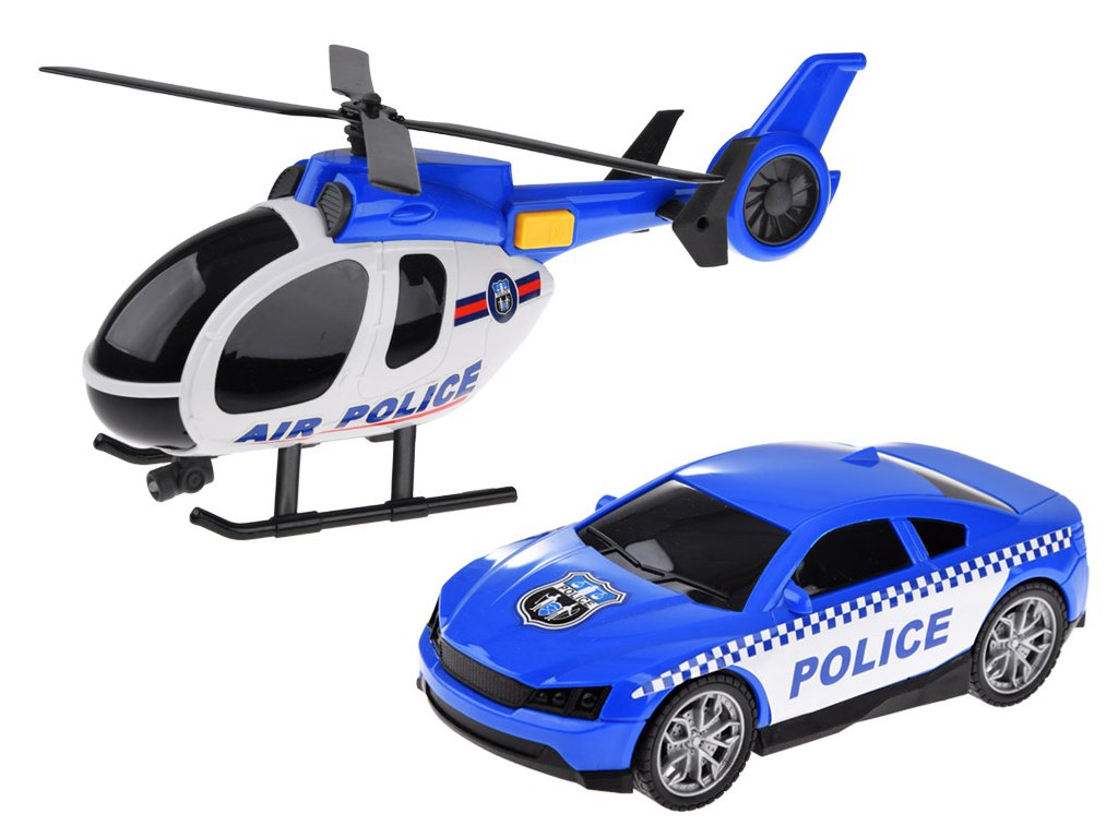 Rendőrségi jármű készlet - autó és helikopter hanggal és fénnyel