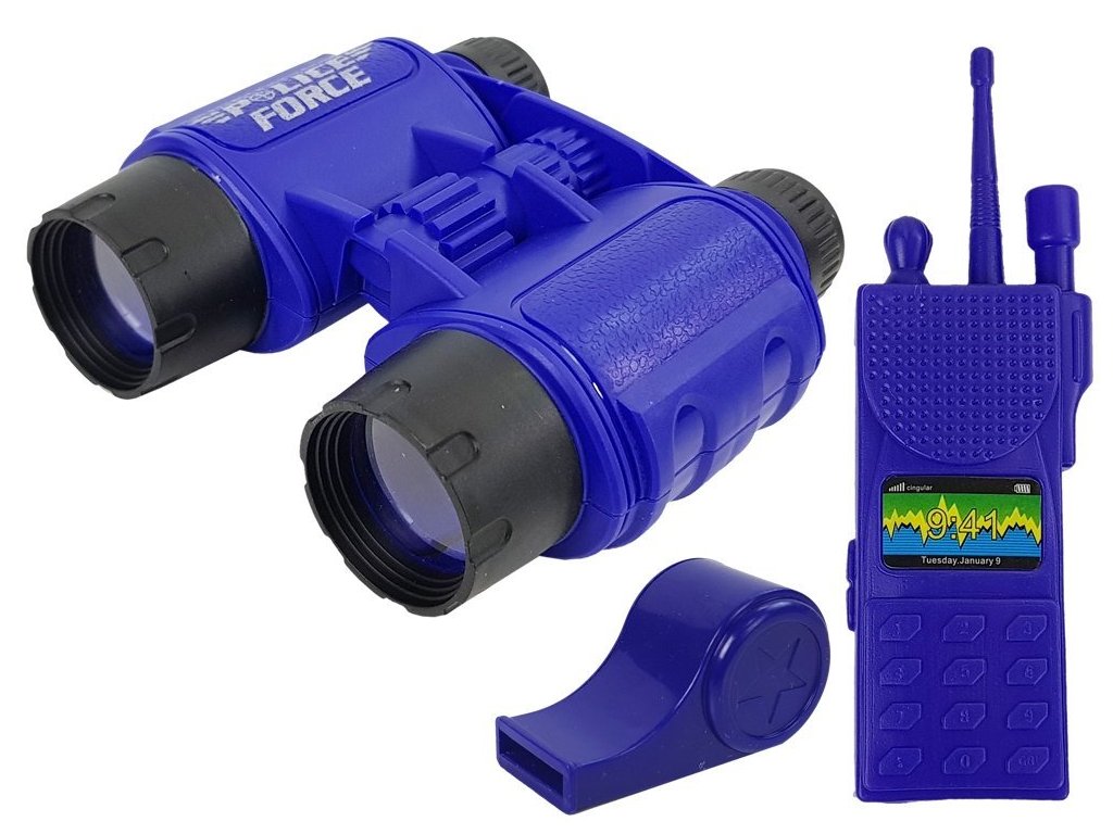 Rendőrségi készlet pisztoly bilincs távcső síp óra jelvény