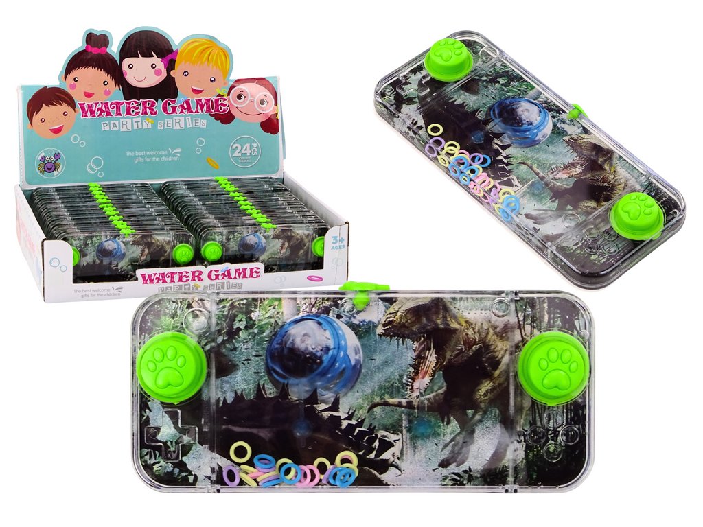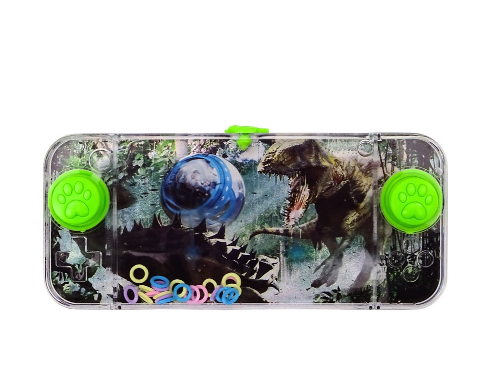 Ez egy klasszikus vízi ügyességi játék dinoszaurusz témájú, gyakran kis, téglalap alakú játék formájában kapható. A mechanizmusa egyszerű, de nagyon szórakoztató. A játék téglalap alakú, ami kényelmes kézben tartást biztosít. A készülék jobb és bal oldalán két zöld gomb található, amelyek kulcsfontosságúak a játékban, és könnyen elérhetők a játékos ujjaival. A játék belsejében egy vízzel teli átlátszó edényben színes gyűrűk vannak. Ezek szabadon lebegnek a folyadékban. A játék alján két tüske található, amelyekre a gyűrűket fel kell fűzni. Ezek a tüskék olyan célpontok, amelyekbe a játékosnak bele kell ütnie a gyűrűket.