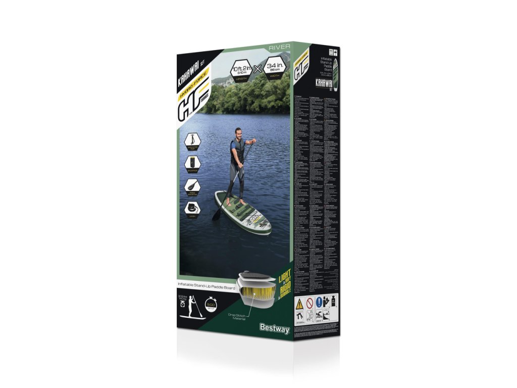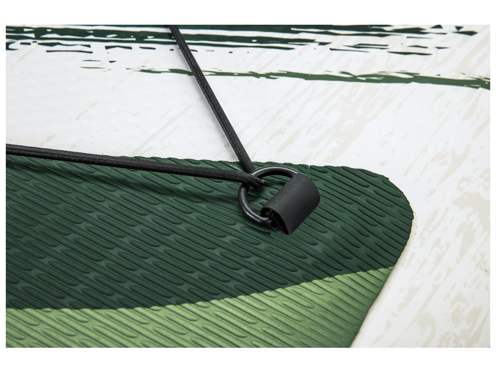 Lehké pádlo obsažené v sadě výrazně zjednodušuje způsob řízení. Odnímatelná ploutev zvyšuje sílu řízení a rychlost. Deska má velkou protiskluzovou trakční podložkou, která pomáhá udržet rovnováhu.