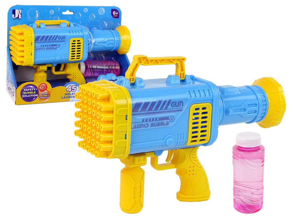 A Bublifuk bazooka egy olyan játék, amely minden gyermek számára vonzó – fiúknak és lányoknak egyaránt. A játék használatával megcsodálhatod a levegőben emelkedő szivárványos szappanbuborékokat, amelyek gyönyörűen csillognak különböző színekben. Több tucatnyi darabot tud készíteni! A bemutatott játék dizájnja ötvözi a nagy fegyverekre, még az automata fegyverekre is jellemző felépítést. Amint látja, fantasztikusan egyesül egy egésszé, és egy közönséges szappanbuborék-gépet eredeti, szokatlan játékká varázsol.