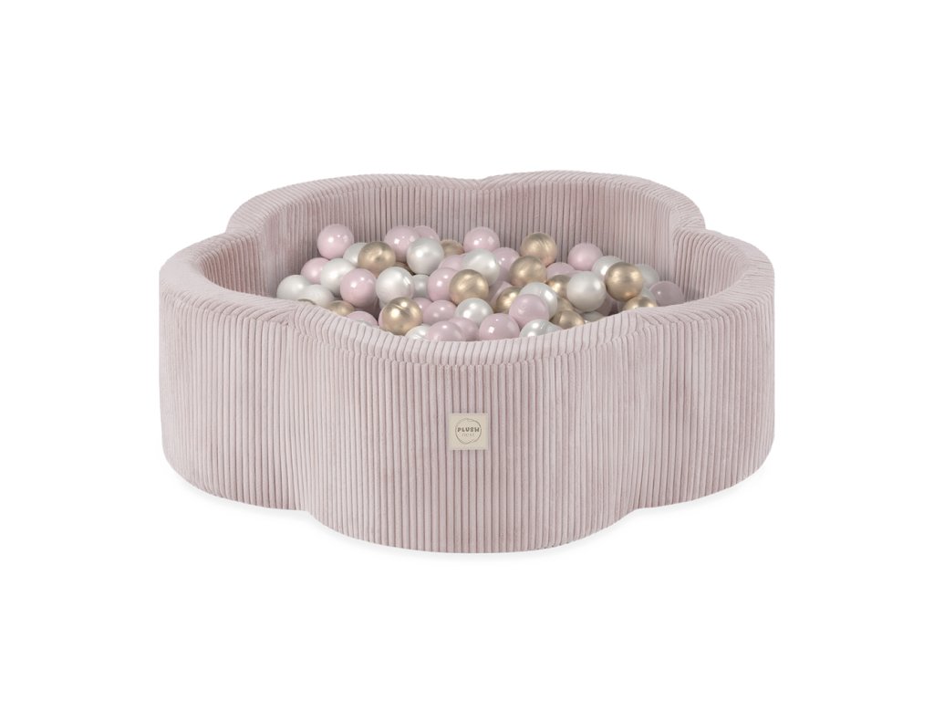 Száraz virágzóna medence 95 × 30 cm, prémium világos rózsaszín kordbársony, 300 labdával
