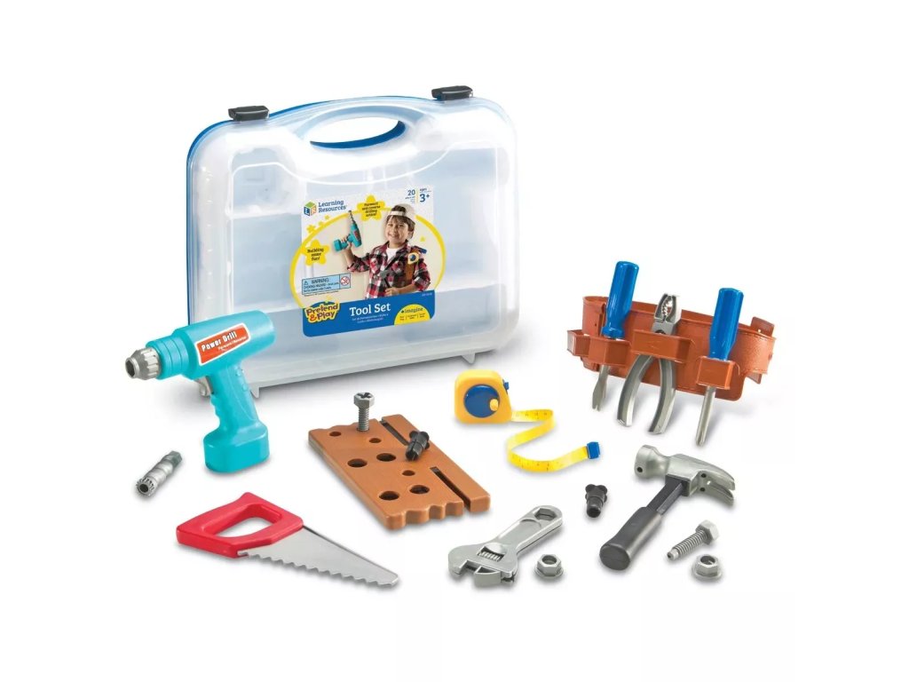 Ebben a Learning Resources márkájú szerszámkészletben a kis építők és kézművesek mindent megtalálnak, ami a fantáziadús építési megbízásokhoz és otthoni projektekhez szükséges.