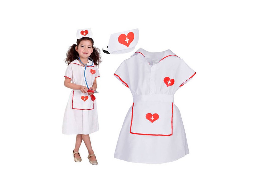Kostým profesionální zdravotní sestry je ideální volbou pro každou malou milovnici hraní si na pečovatelku a pomáhání druhým! Kostým se skládá z klasických bílých šatů s červenými akcenty, zástěry a stylové čepice zdravotní sestry zdobené srdcem a křížem. Celá souprava je ve zdravotnickém stylu, což jí dodává na realističnosti a umožňuje dítěti zahrát si na skutečnou zdravotní sestru nebo doktora.