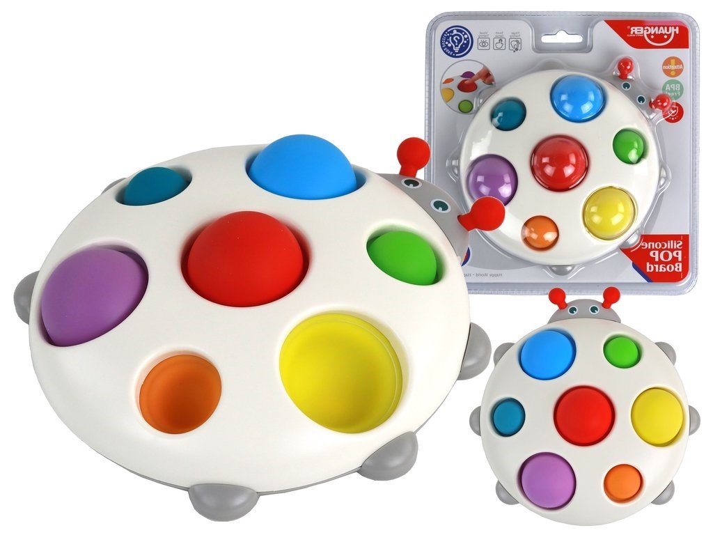 A színes szilikon Pop It játék nagyszerű játék a legkisebb felfedezők számára. Ezt a katicabogár alakú szenzoros tányért a gyermekek érzékszervi fejlődését szem előtt tartva tervezték. Színes szilikon mélyedésekkel rendelkezik, amelyek a másik oldalra mozgathatók a lenyűgöző és tanulságos szórakozás érdekében. A tányérnak 7 színe van: sárga, zöld, piros, narancs, kék és türkiz, ami serkenti az érzékszerveket és segít fejleszteni a színek felismerésének képességét.