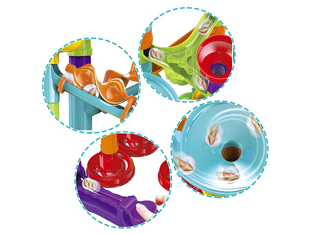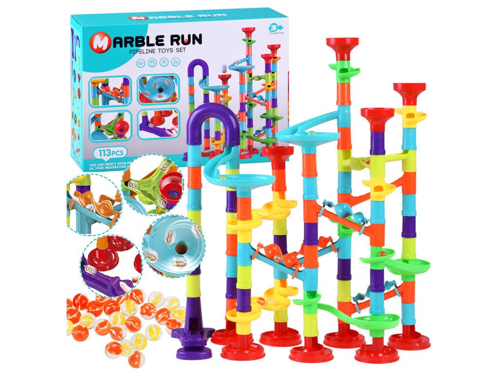 Spirálová dráha pro kuličky 113 prvků je sada, která zajistí mnoho hodin nekonečné zábavy. Dráha se skládá z mnoha barevných prvků, včetně vystřelovačů a kuliček, s jejichž pomocí si dítě může vytvářet jedinečné a neopakovatelné trasy. Děti mohou reprodukovat model nakreslený v obrázkové instrukci, který ukazuje příklad trasy s využitím všech prvků, nebo experimentovat a stavět vlastní konstrukce: skluzavky, mosty, sloupy, kolotoče, dvojité spirály a komíny lze spojovat různými způsoby. Dráhu je třeba navrhnout a sestavit tak, aby kulička překonala celou trasu. Vytvořte různé dráhy a sledujte, jak kuličky stoupají, klesají a pohybují se všude rychle. Hračka stimuluje kreativitu, prostorové myšlení a rozvíjí motorické dovednosti. Hraním dítě také rozvíjí logické myšlení, plánování, zlepšuje psycho-motorickou koordinaci a motoriku.