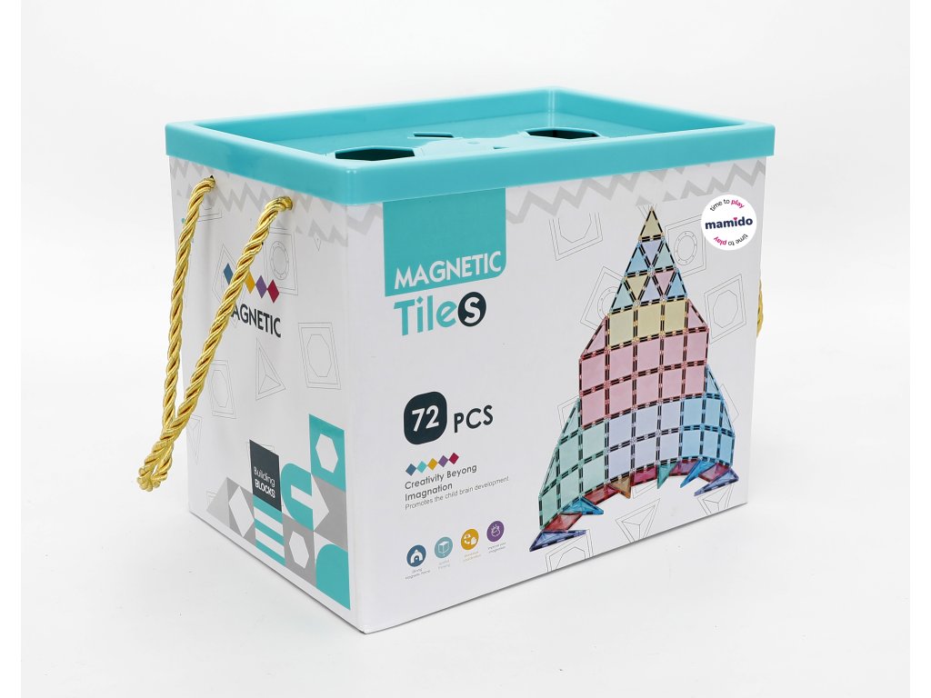 - 72 mágneses építőelem különböző formákban