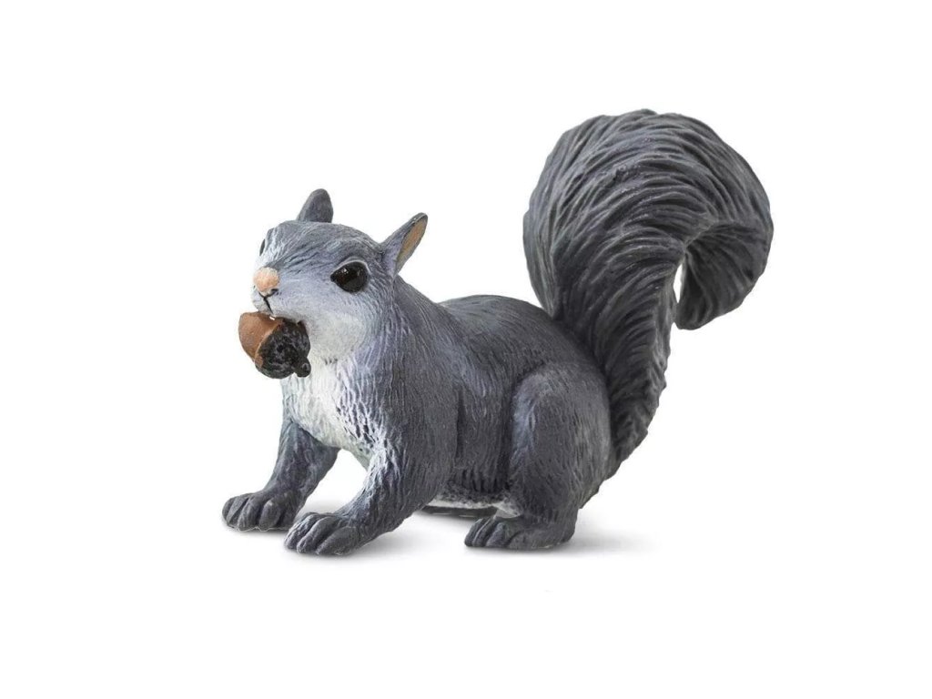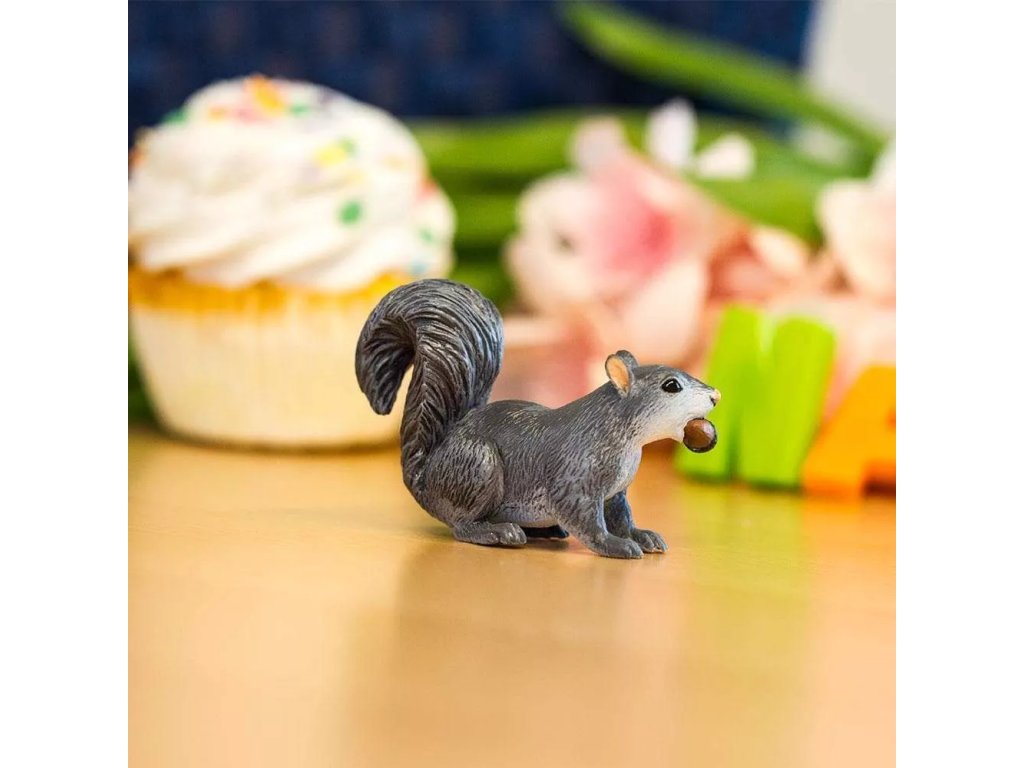 Részletesen kidolgozott mókus figura makkal, amely „felugrik” a fára, és elrejti kincsét a rejtekhelyére.