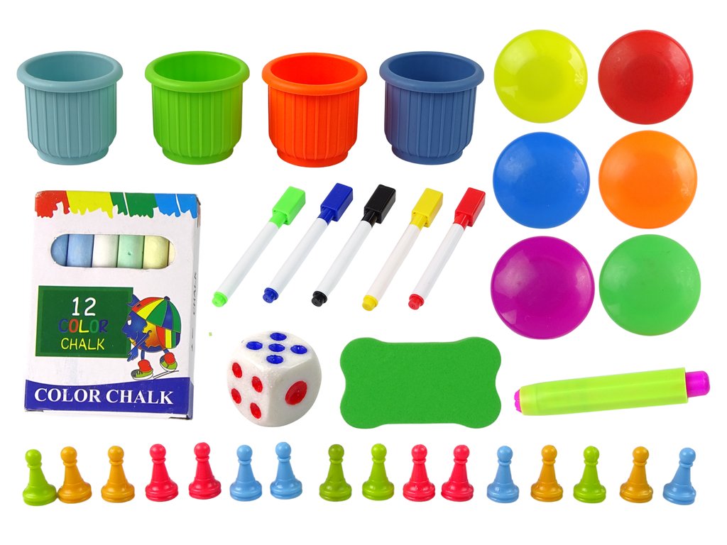 Sok lehetőség egy játékban! A kis művész saját maga készíthet képeket, fejlesztheti művészi képességeit és szórakozhat. A táblának két felülete van a rajzoláshoz - egy fehér felület a törölhető jelölők használatához és egy fekete felület a krétával történő rajzoláshoz. A tábla alatti tárolóhely a tartozékok tárolására szolgál, a kerek lyukak ideálisak lesznek jelölőknek és krétáknak. Második felhasználása játékfelületként szolgál, két játéktáblát tartalmaz (Snakes és Don't Be Angry Man).