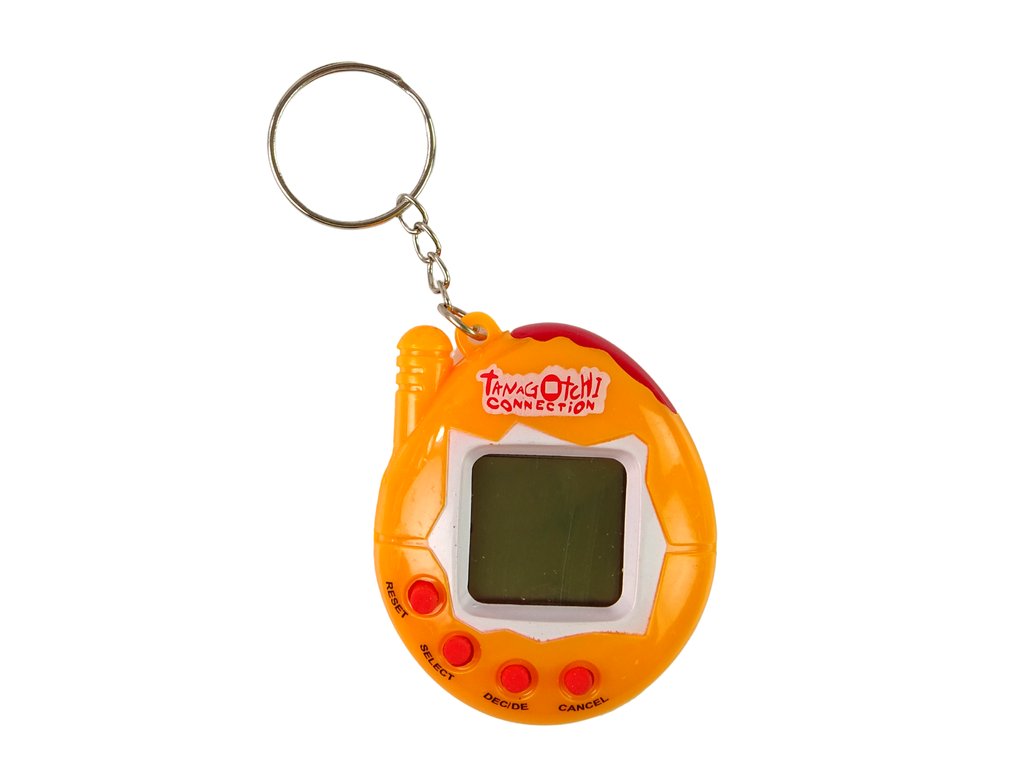 Tamagotchi tojásban, narancssárga elektronikus játék egy kis állattal