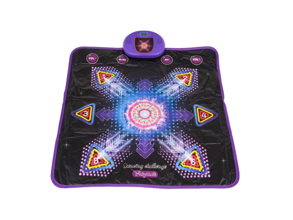 Táncszőnyeg Bluetooth-szal, világítással és fűtéssel 3 éves kortól gyerekeknek . Puha és színes, alatta csúszásmentes réteg van. A betét közepe akár 45 fokot is felmelegíthet, hogy felmelegítse a kicsi fagyott lábát. A szőnyeg 5 üzemmódban működik: szabadtánc, világítás (2. és 3. mód), memória és dob. Bluetooth-on keresztül csatlakoztathatjuk a padot a telefonhoz.