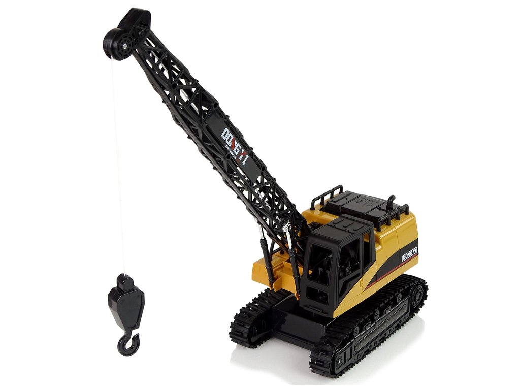 A robusztus, 1:12 méretarányú RC daru minden kis építőmestert lenyűgöz. A modell lánctalpas alvázzal van felszerelve, amelynek köszönhetően előre és hátra tud haladni, és könnyen fordul. A daru 360°-ban kézzel forgatható, és a távirányító segítségével a horog felemelhető és leengedhető. A még valósághűbb élmény érdekében színes fényekkel és hanghatásokkal van felszerelve. A USB kábel segítségével könnyen tölthető.