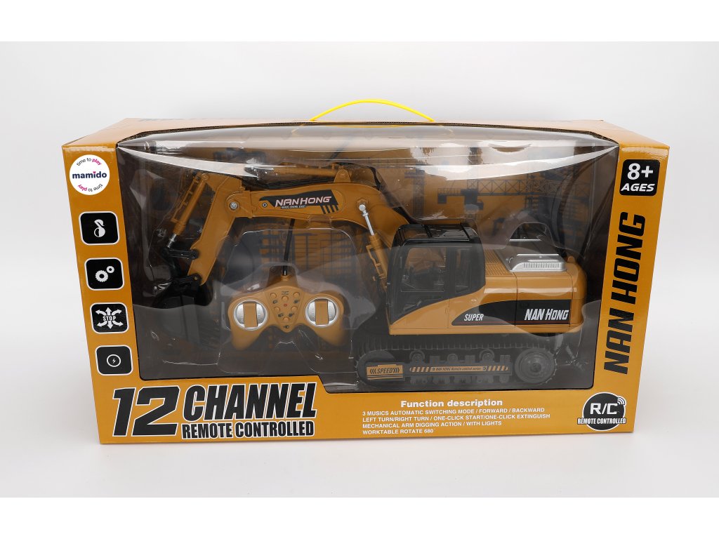 Tartozék egy újratölthető akkumulátor és egy USB töltőkábel. A vezérlő áttekinthető – alkalmas gyermekek számára, akik szeretik az építkezési technikát és szeretnének kotrósként játszani. A játék 3 éves kortól alkalmas.