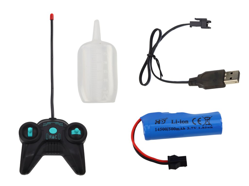 A játékautó 3,7V-os akkumulátorral működik, mely a készlet részét képezi. Az akkumulátorhoz töltő is tartozik.