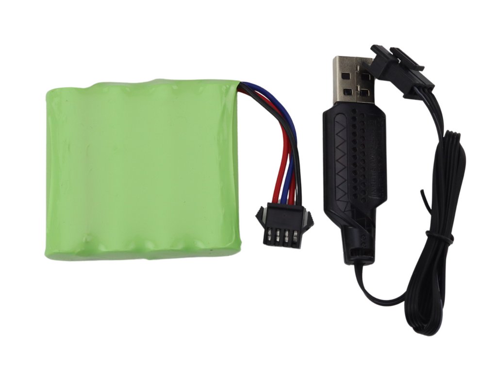 Az autót egy 6V-os 500mAh-s akkumulátor hajtja, amely a csomag része. Az akkumulátorhoz töltő is tartozik.