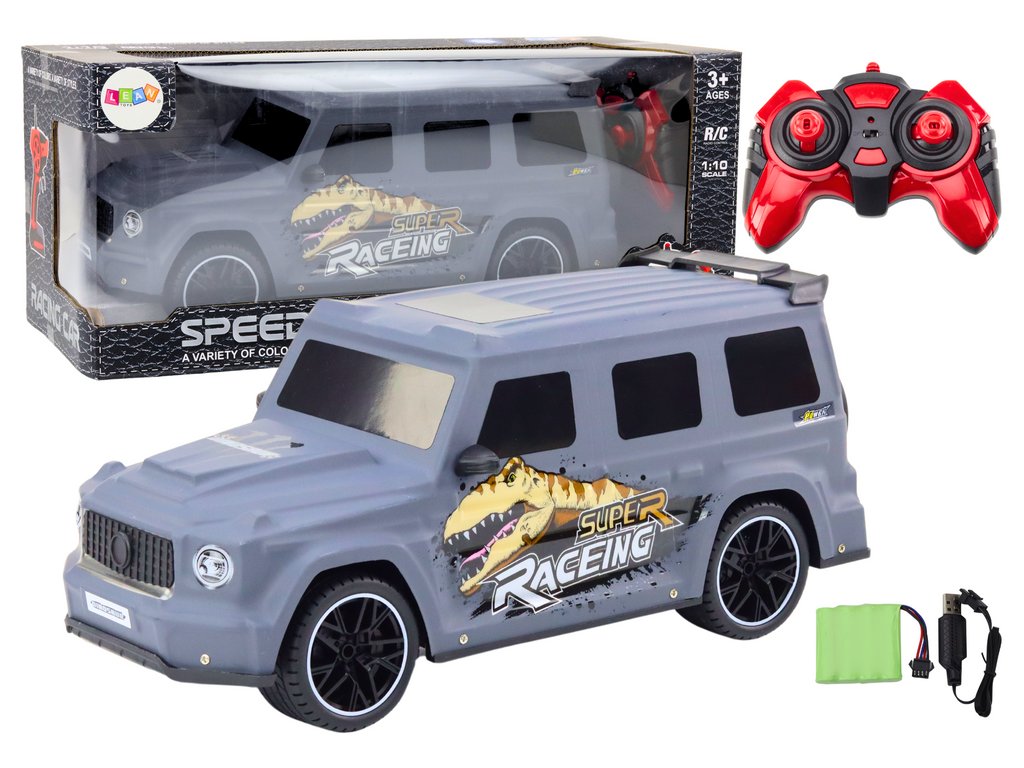 Távirányítós RC autó dinoszaurusszal, szürke 1:10 méretarányban