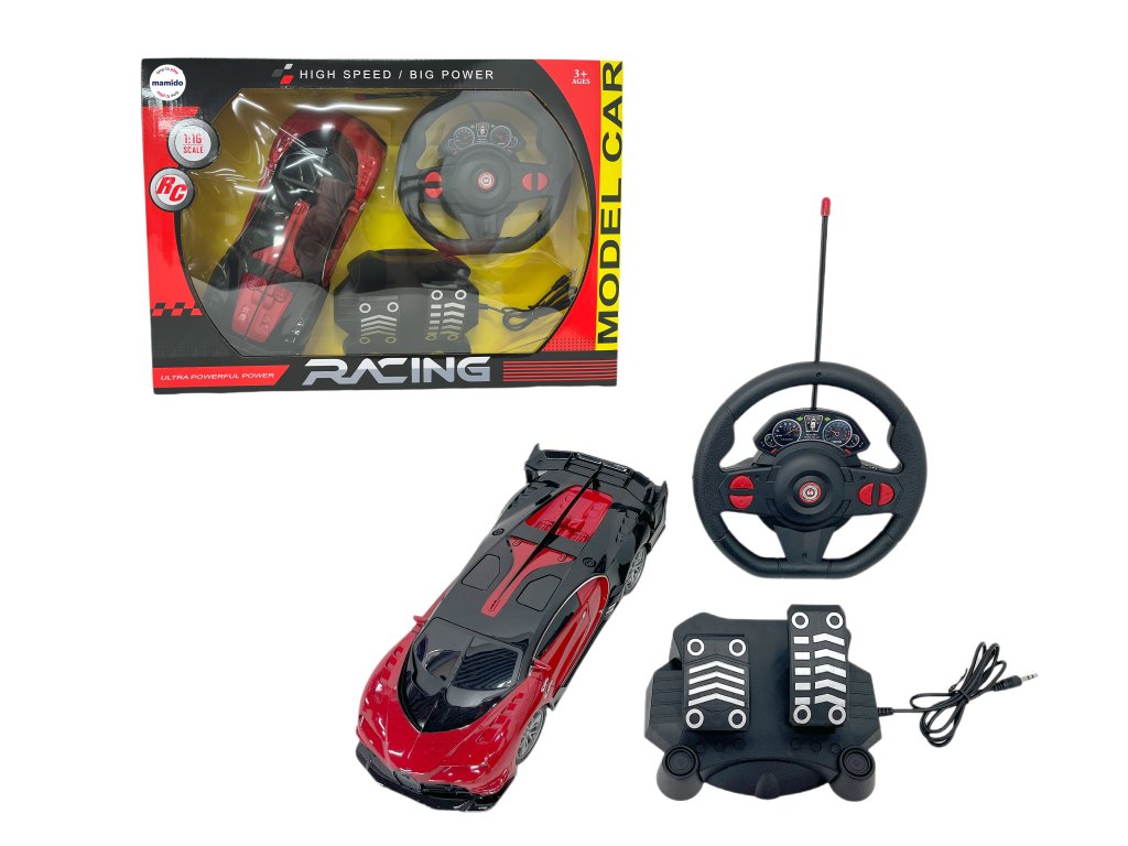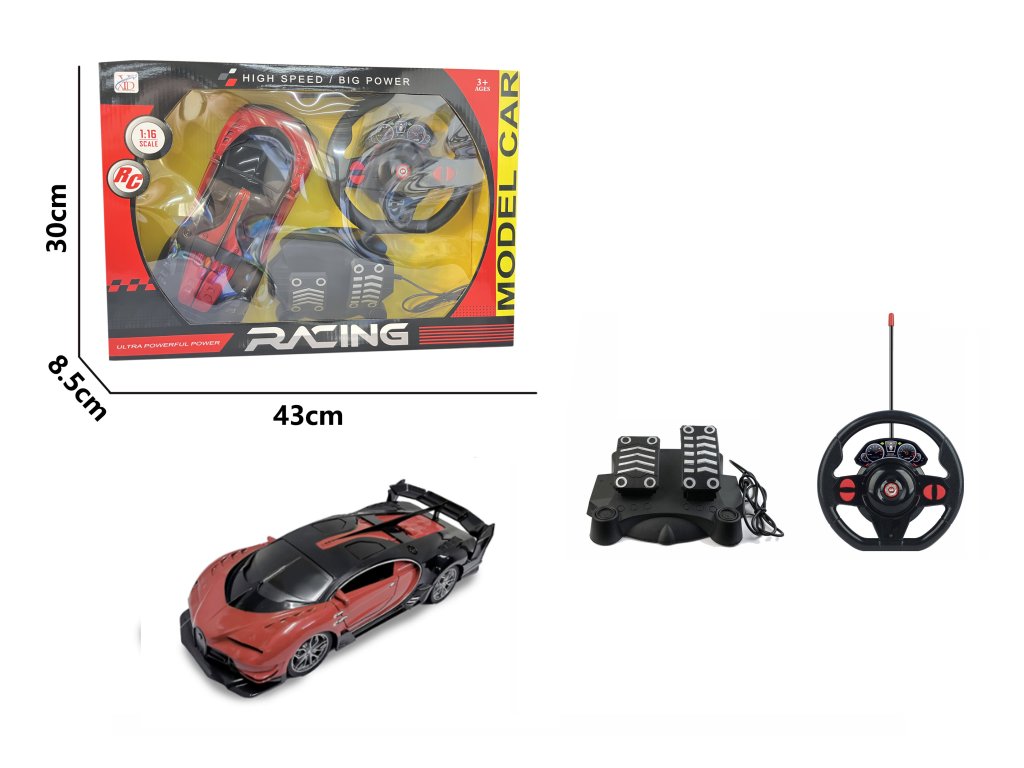 Távirányítós sportautó kormánnyal és pedálokkal GT 1:16 piros