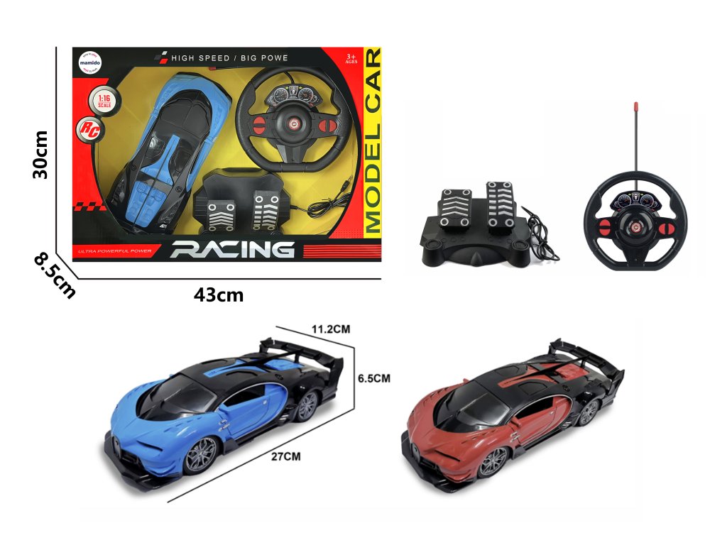 - Autó méretei: 27 cm (hosszúság) × 11,2 cm (szélesség) × 6,5 cm (magasság)
