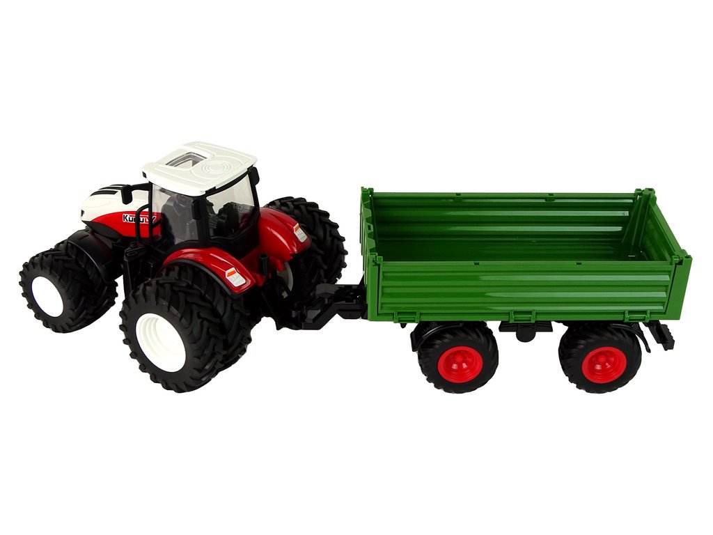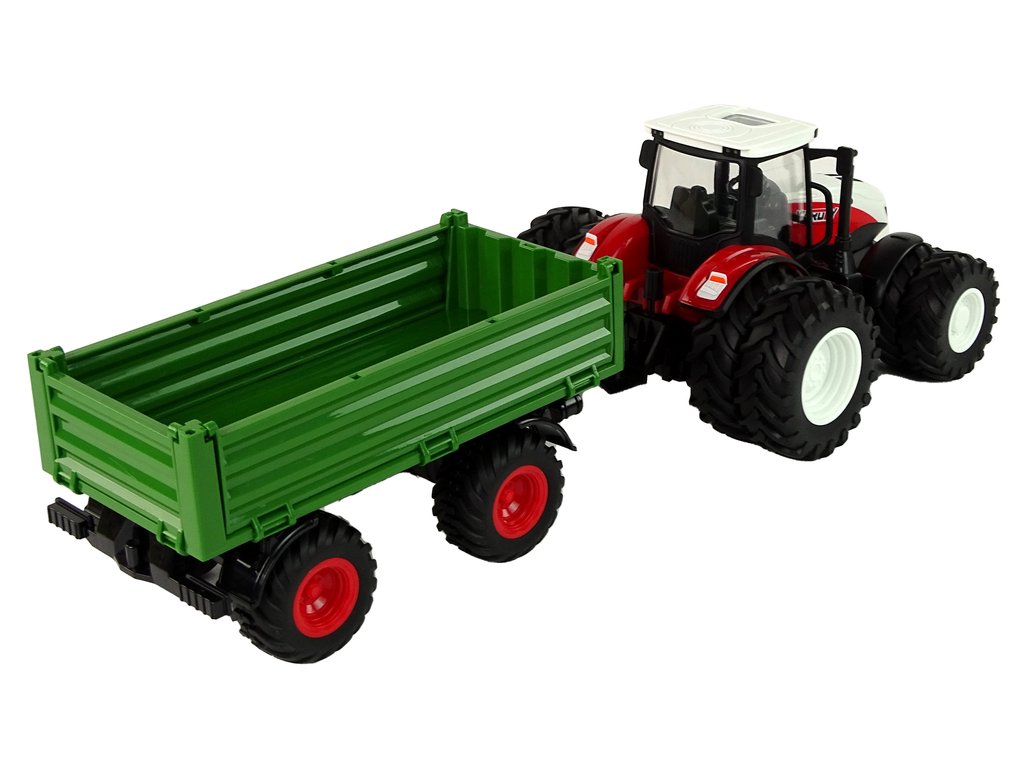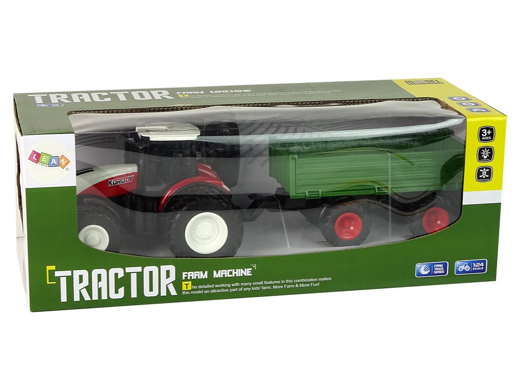 Az 1:24 méretarányú távirányítós traktor pótkocsival remek játék a mezőgazdasági gépek kis szerelmeseinek. Autentikus kialakításának és nagy gumikerekeinek köszönhetően még egyenetlen felületeken is stabil vezetést biztosít. A traktor akkumulátorral működik a hosszú használat érdekében, az utánfutó pedig még több játéklehetőséget biztosít. A távirányító megkönnyíti a traktor irányítását, amely készen áll a kalandra a szántóföldön és otthon.