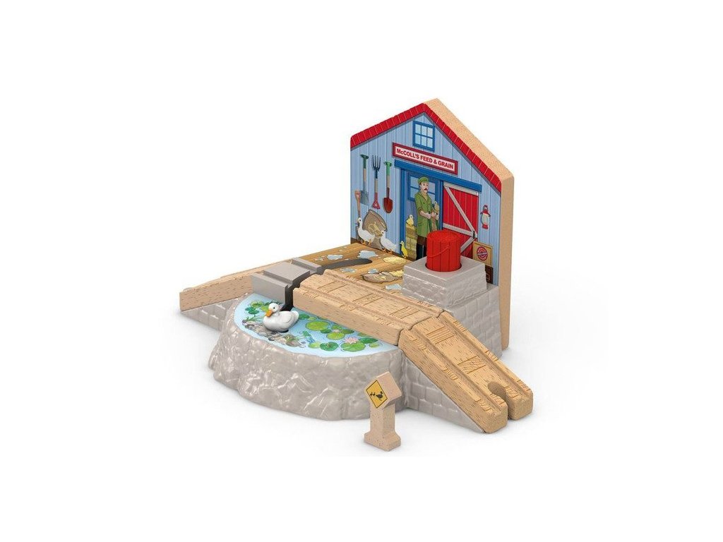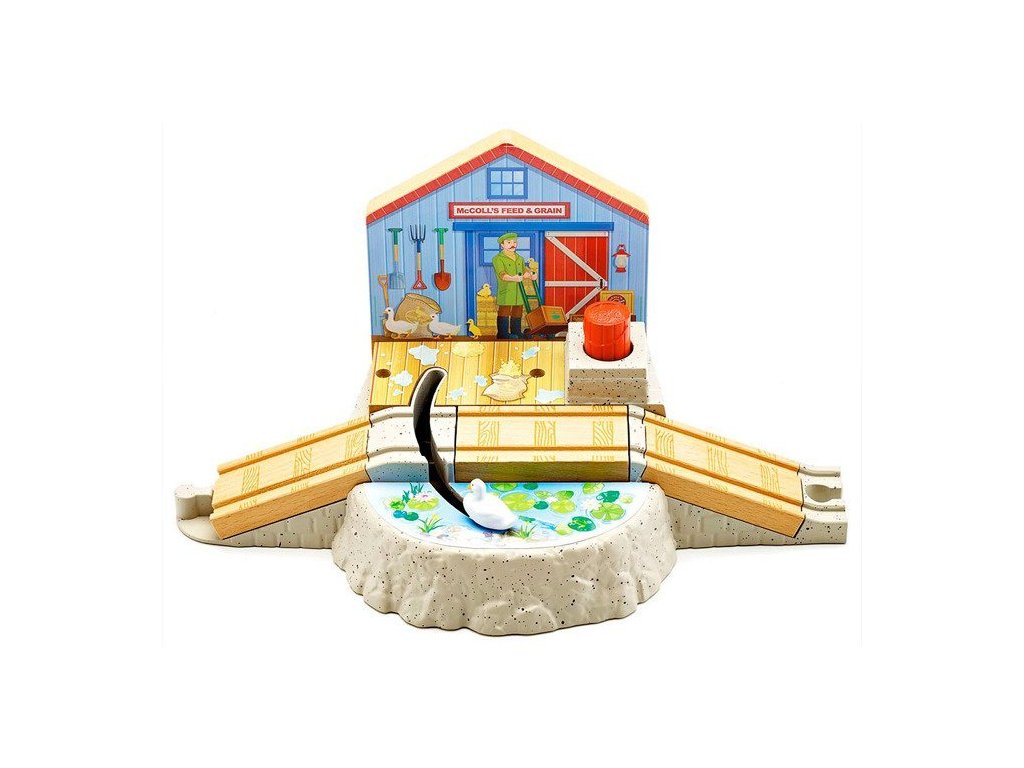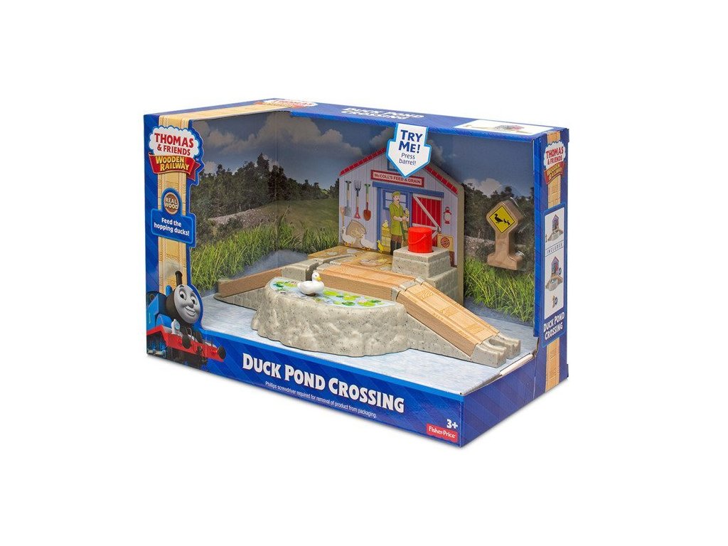 Pohádka Mašinka Tomáš a jeho přátelé Lokomotiva s Kačenkou přináší zajímavá dobrodružství lokomotiv, která nás učí důležité hodnoty jako je zdvořilost, nápomocnost a slušnost vůči ostatním. Stačí stisknout velké červené tlačítko ve tvaru sudu a kačenka se rychle posune po trati směrem k farmě a zpět k rybníku. Součástí soupravy je také varovný znak pro přechod kachen.