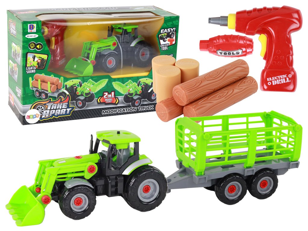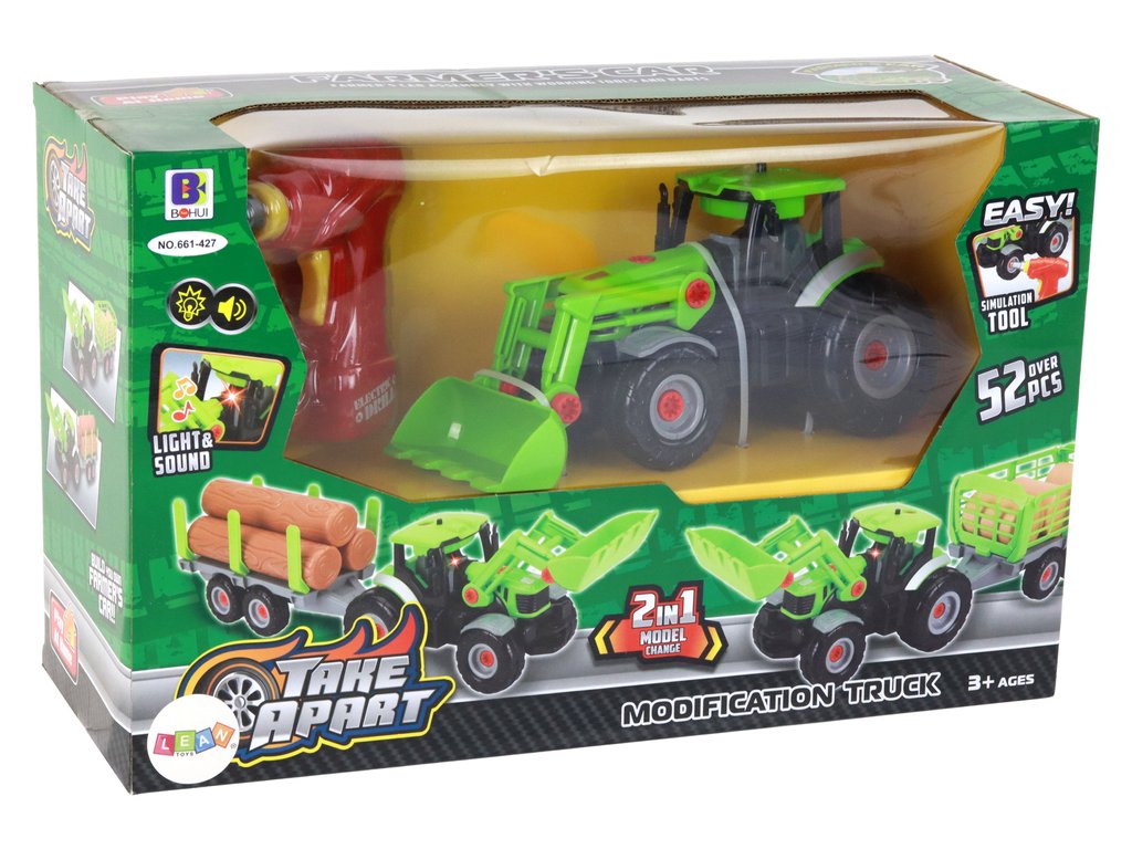 Traktor pótkocsival barkács összeszereléshez Mezőgazdasági gép Csavarhúzóval