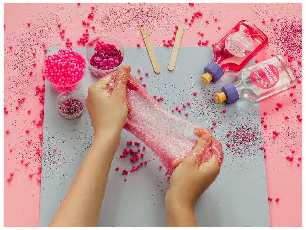 Růžový slime voní po sušenky, a přidáním růžového třpytu lze dosáhnout ohromujícího efektu.