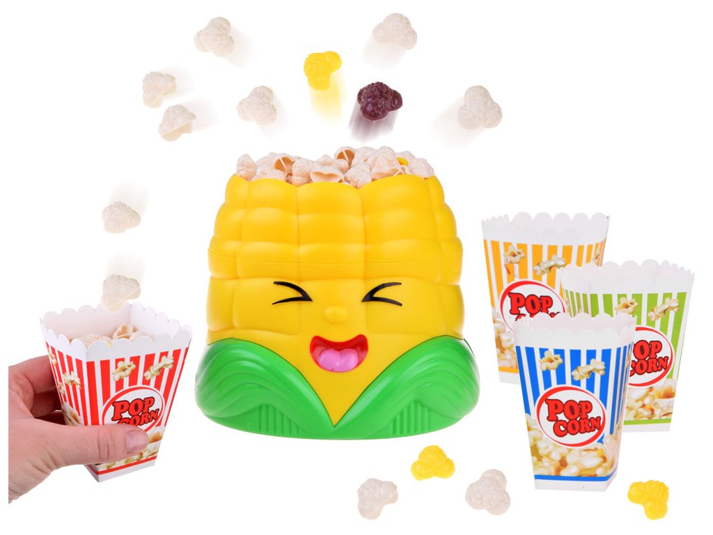 Úžasná dovednostní hra Chyť popcornu do kelímku je skvělým nápadem pro celou rodinu. Jednoduchá pravidla, která jistě zajistí spoustu smíchu a přinesou všem veselou náladu. Hra je určena pro 2-4 hráče. Spočívá v chytání co největšího množství vystřelujícího popcornu ze stroje ve tvaru klasu kukuřice do hrnečků.