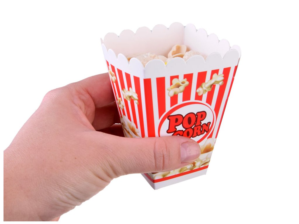 - 4 papírové hrnečky na popcorn,