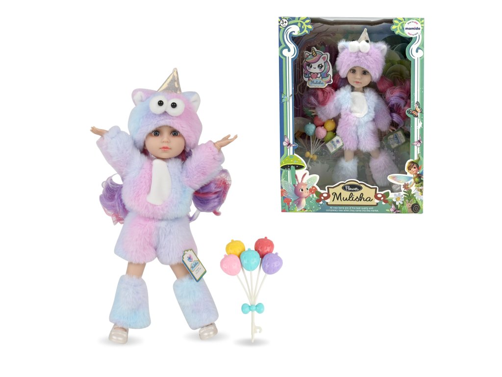 A színes és aranyos Munlisha baba egyedi megjelenésével és mozgatható testével minden gyermeket elbűvöl. Egy plüss egyszarvú jelmezbe van öltöztetve, színes, szivárvány árnyalatú hajjal, amely fésülködésre és frizurák készítésére csábít. Az ízületes testnek köszönhetően a baba több mozgást és természetes pózolást tesz lehetővé.