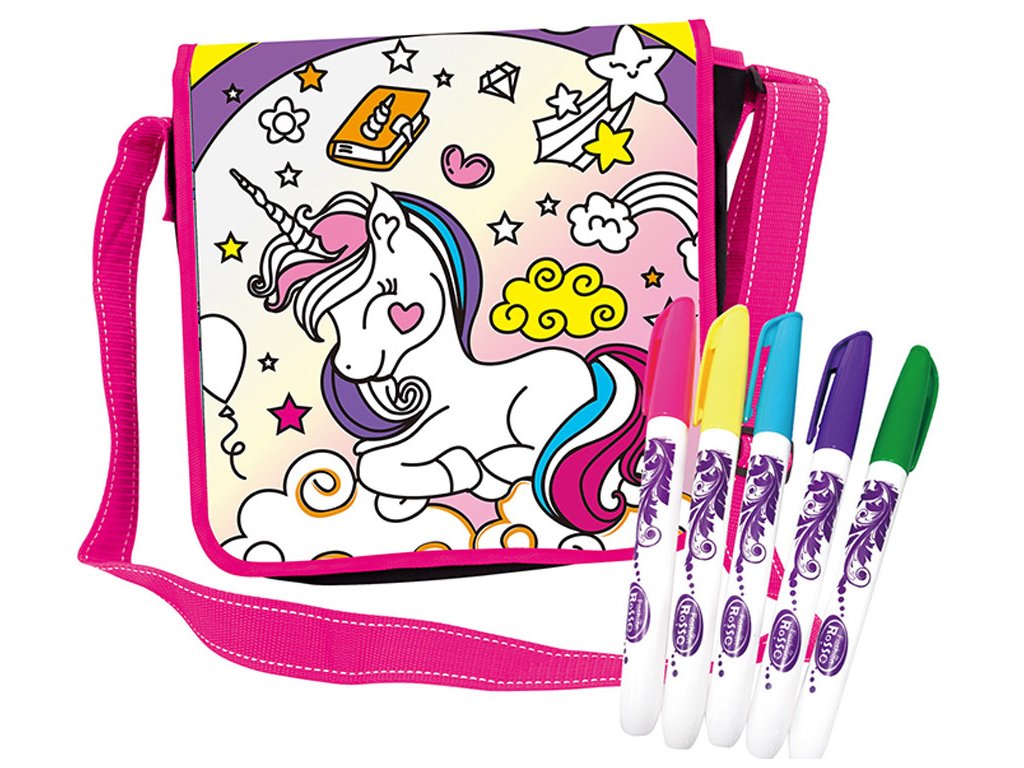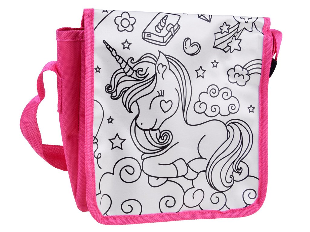 Az egyszarvú festőtáska minden kis művész számára készült, aki szereti a műalkotásokat. A táskát magának kell kifestenie, saját elképzelése és fantáziája szerint. A fekete grafika egy aranyos egyszarvút ábrázol csillagokkal, felhőkkel, virágokkal és egyéb mesebeli elemekkel. A kis művész feladata, hogy a táskát úgy festse ki, hogy az egyedi és utánozhatatlan legyen. Ehhez a készletben található tollakat használjuk.