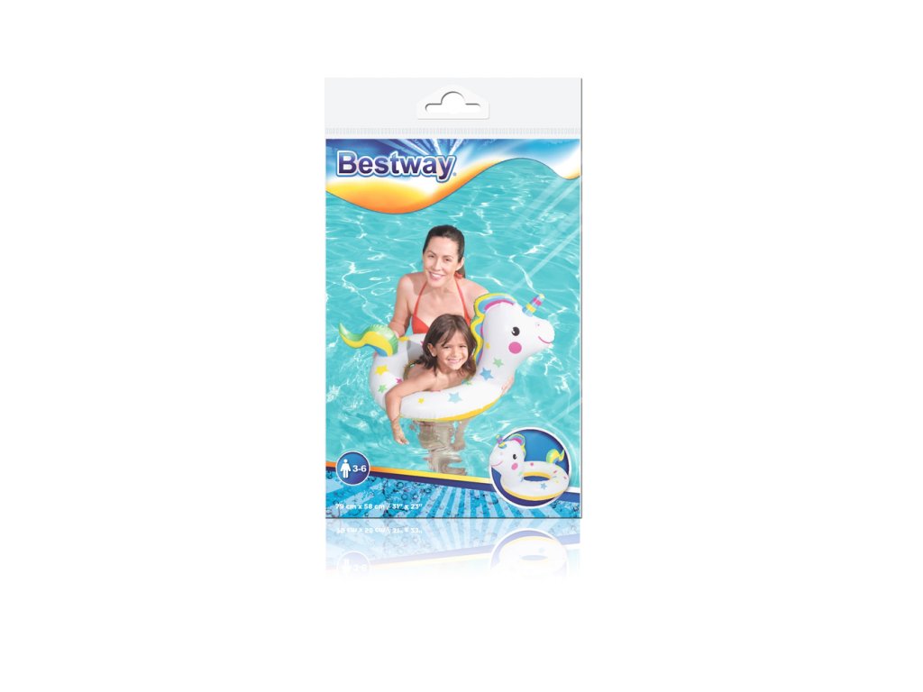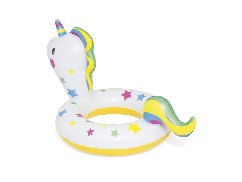 Az egyszarvú felfújható medencegyűrű mérete 79 x 58 cm. A gyűrű remek kiegészítő lesz a nyaralás során, függetlenül attól, hogy a tenger mellett vagy a medencében játszódik. Biztosak vagyunk benne, hogy a felfújható gyűrű könnyedén ösztönzi gyermekét a szabadtéri tevékenységekre, és változatosabbá teszi játékait. A felfújható gyűrű tartós, sérülésálló PVC anyagból készült, és 3-6 éves gyermekek számára készült.