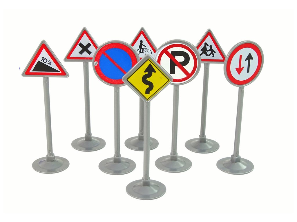 Součástí je také osm výstražných a zákazových značek. Děti se díky nim mohou seznámit s různými silničními symboly a zároveň rozvíjet jejich povědomí o bezpečnosti.