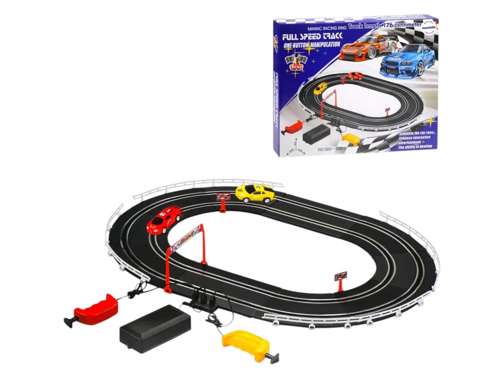 A szórakoztató elektromos versenypálya dinamikus versenyeket kínál két sportautó számára, amelyek elektromos árammal mozognak a pályán. A realisztikus kialakításnak, a kanyaroknak és a hosszú pályának köszönhetően a gyerekek órákon át élvezhetik a feszültséggel teli szórakozást. A vezérlők lehetővé teszik a sebesség szabályozását és a barátok vagy a szülők elleni versenyt.