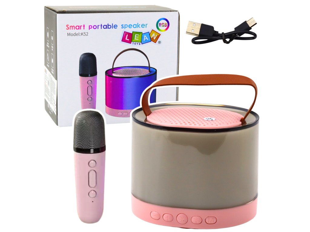 Vezeték nélküli karaoke hangszóró mikrofonnal K52 RGB Bluetooth rózsaszín