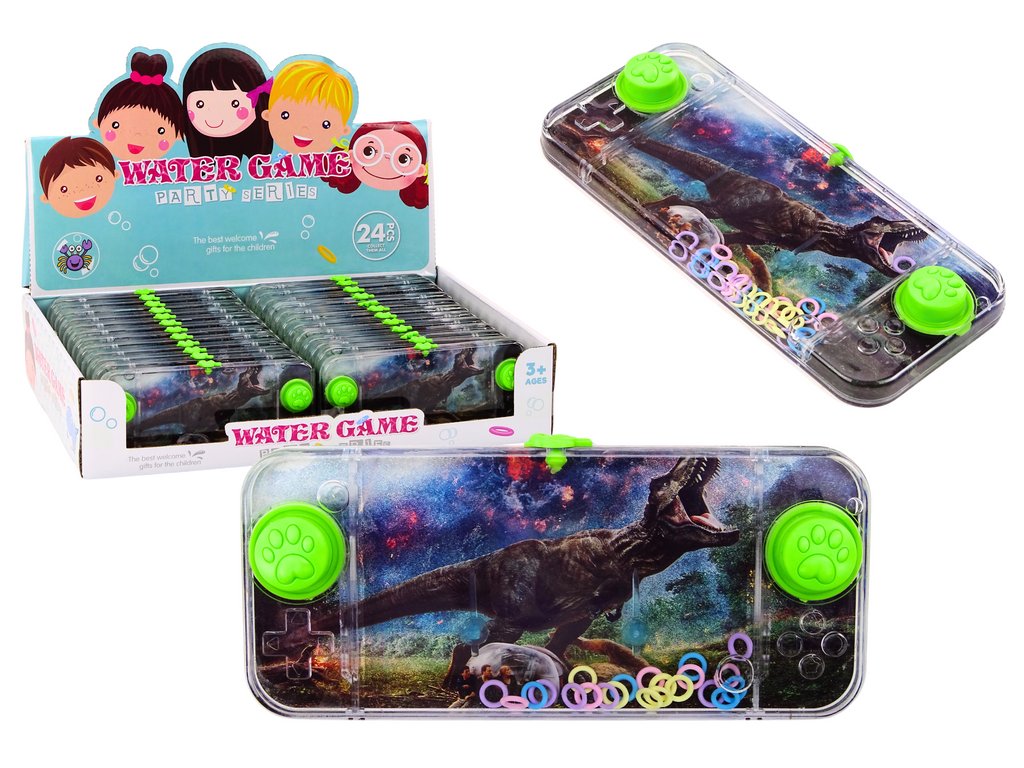 Ez egy klasszikus vízi ügyességi játék dinoszaurusz motívummal, gyakran kis, téglalap alakú játék formájában. Mechanizmusa egyszerű, de nagyon vonzó. A játék téglalap alakú, ami kényelmessé teszi a kézben tartását. A készülék jobb és bal oldalán két zöld gomb található, amelyek kulcsfontosságúak a játékban, és könnyen elérhetők a játékos ujjaival. A játék belsejében egy vízzel töltött átlátszó tartályban színes gyűrűk találhatók, amelyek szabadon lebegnek a folyadékban. A játék alján két tüske áll ki, amelyekre gyűrűket kell helyezni. Ezek a tüskék azok a célpontok, amelyekre a játékosnak céloznia kell a gyűrűket.