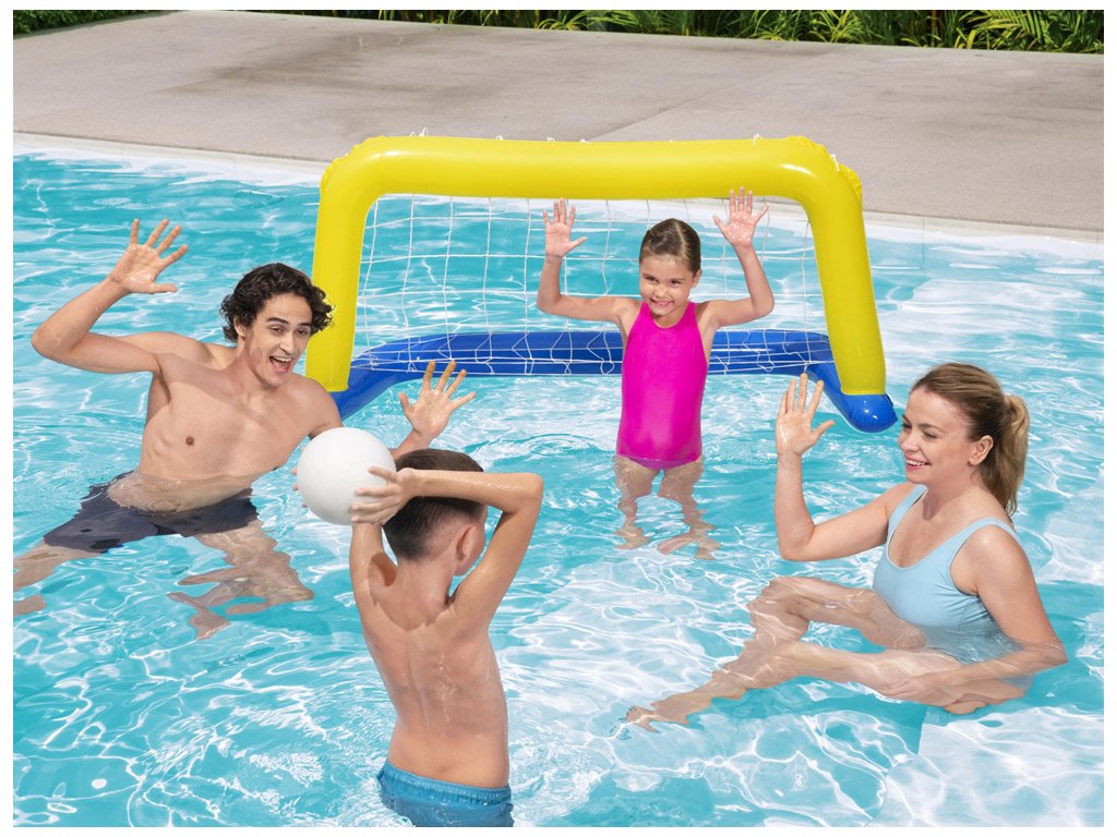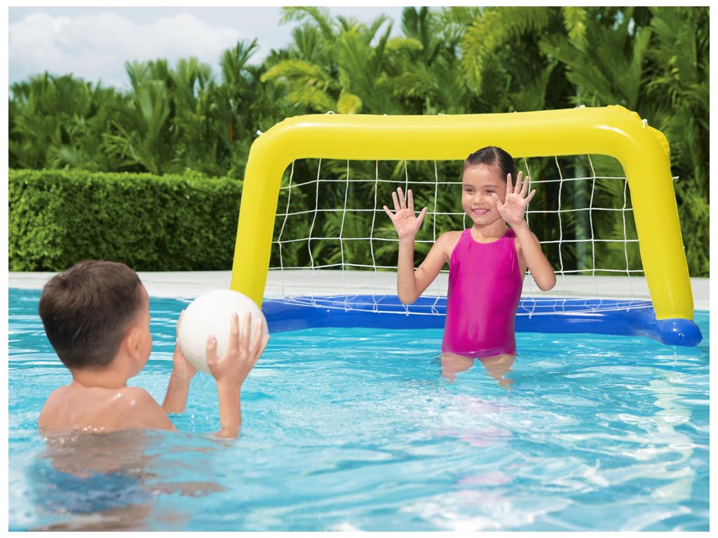 Egy nagyszerű felfújható vízifoci kapu biztosan sok vízi sportrajongónak tetszeni fog. A kapu 0,19 mm vastag vinilből készült és hálóval van ellátva. Remek módszer a nyári unalom feloldására. Csak fújd fel a gólt, keress társat, akivel játszhat, kezdődhet a medence és a móka.